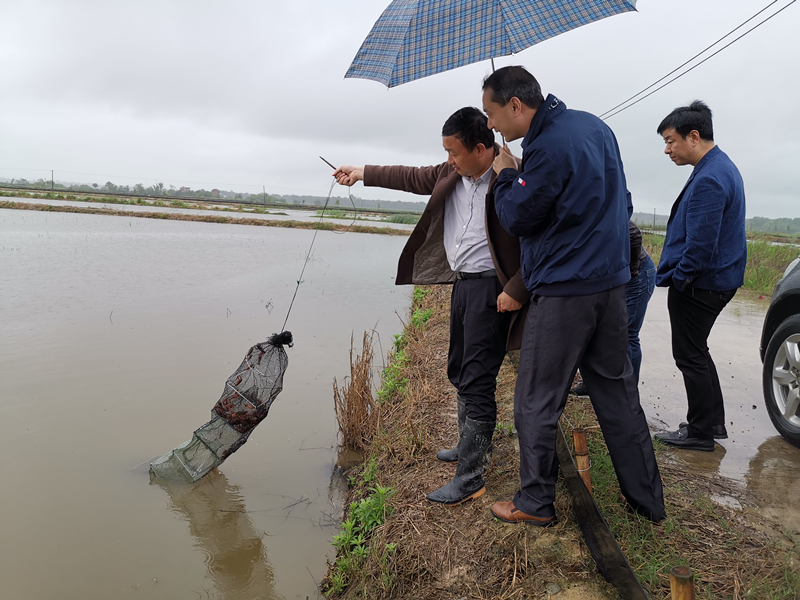 在宣城市宣州区棋盘乡,棋盘塔生态农业有限公司负责人黄朝斌陪同黄德春一行实地考察了该公司万亩虾稻轮作基地,并详细介绍了该公司通过“村集体+公司+农户”模式发展村集体经济、带动农户脱贫致富的相关经验和做法,同时和三德村“两委”同志就如何发展现代农业、增加村集体经济收入等作了交流探讨。