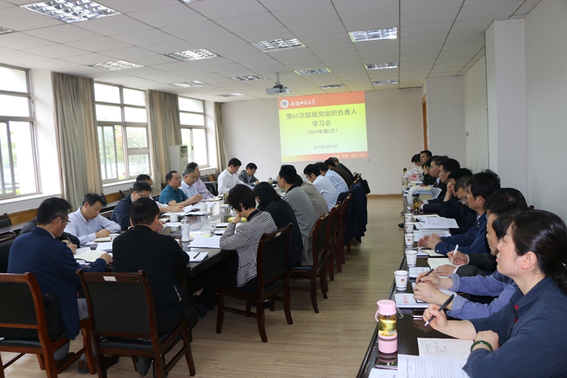 本网讯(组织部 李古州)4月25日,学校召开2019年第2次院级党组织主要负责人学习会(总第61次),学习《党政领导干部选拔任用工作条例》、习近平总书记在十九届中央政治局第十二次集体学习时的讲话精神和全省有关会议精神等。校党委副书记李琳琦主持会议并讲话,党委部门和各院级党组织主要负责人参加会议。