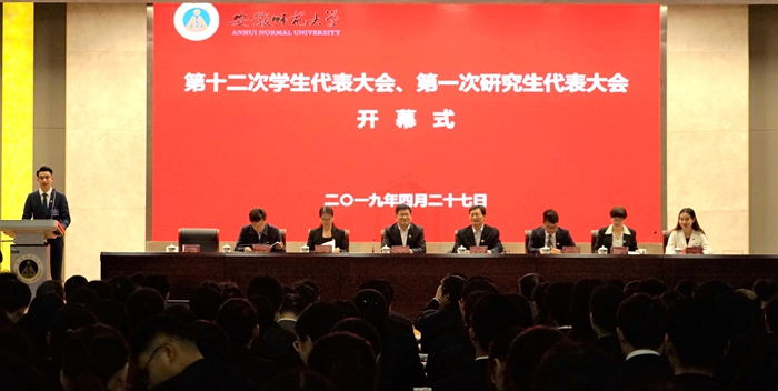 青通社讯(余 琼 陈龙强 高泰昊 陈 骁)4月27日,安徽师范大学第十二次学生代表大会、第一次研究生代表大会在花津校区理科大楼报告厅召开。校党委书记顾家山,校党委副书记、校长张庆亮,校党委常委、副校长毕明福,副校长彭凤莲,团安徽省委学校部部长卢蓉,安徽省学联驻会执行主席杨飞扬出席开幕式。学校有关部门负责同志,各学院党委书记、副书记应邀参加开幕式。303名学代会、研代会代表肩负我校近3万名青年学生的期望和重托,认真履职参会。各学院团委书记作为列席代表参会。