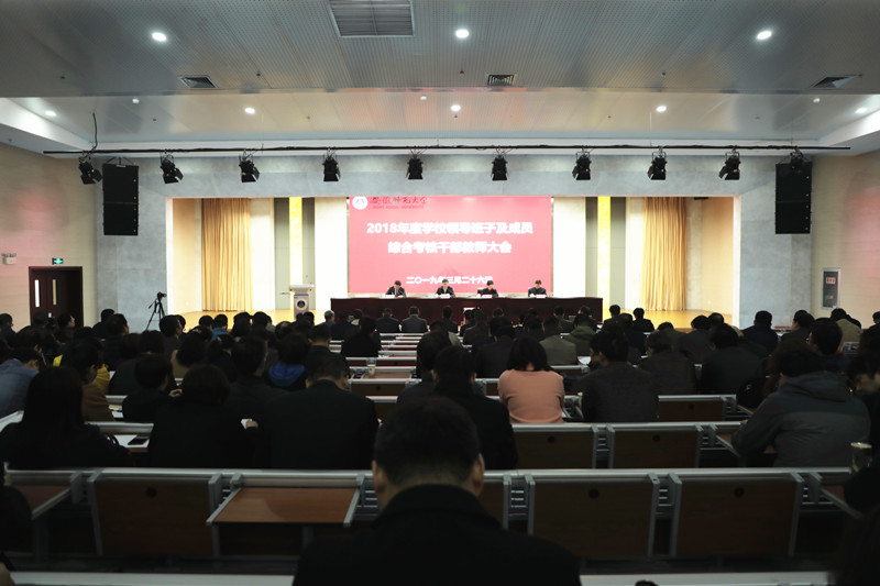 当天上午,学校在花津校区实训大楼报告厅召开校级领导班子和领导人员2018年度综合考核干部教师大会。学校省管领导人员,机关部门领导成员,学院及二级机构党政正职,教师代表、学生代表等近300人参加会议。大会由校党委书记顾家山主持。