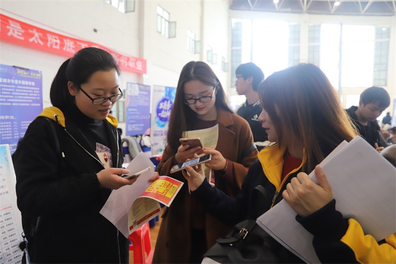 “为了赶上这场面试,我今天一大早就从阜阳出发了。之前寒暑假的时候也去教育机构当过助教,当一名数学老师是我从小的梦想。”来自阜阳师范学院的2015级毕业生小王对记者说道。现场热火朝天的招聘景象,顿时冲淡了小王连续5个多小时的颠簸劳累,迅速投身到了招聘双选的人潮之中。