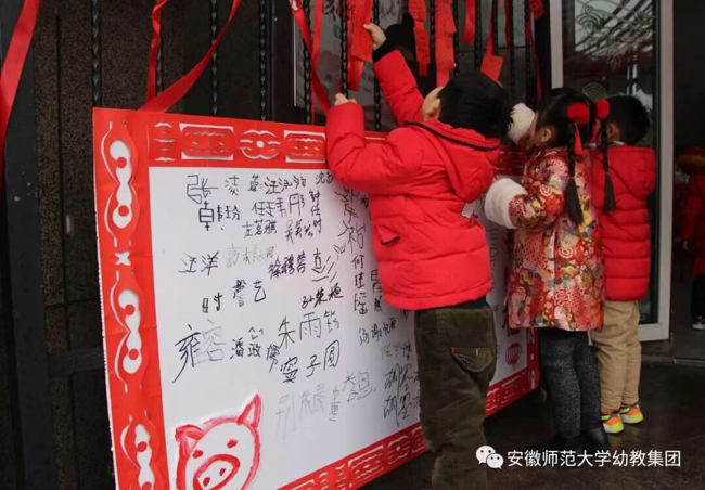 新年伊始,万象更新,2019218日是春季开学第一天。为了让孩子们了解中国传统文化和民族习俗,感受中国传统节日的喜庆氛围,安师大幼教集团独具特色的“民俗喜乐会”正式拉开了集团各园新学期的大幕!“咚咚锵,咚咚锵……” 金狮闹春,锣鼓铃铛齐欢唱。一大早,安师大幼教集团各园园长、老师们、担任“小礼仪”的小朋友们身着红火的新年装,用亲切的笑容迎来入园的家长和孩子们,并送上装满甜蜜的“祝福红包”,祝愿小朋友们猪年旺旺!