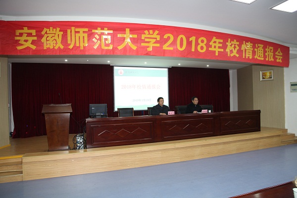 本网讯(离退休工作处)1月19日上午,学校在赭山校区图书馆报告厅召开学校2018年校情通报会,校党委副书记、校长张庆亮向离退休老同志通报校情,学校离休老干部、校退教协理事、小组长、校院两级关工委、大学生素质报告厅全体成员以及2018年80寿辰的老同志参加会议,学校有关部门负责人参加了会议,会议由校党委副书记李琳琦主持。
