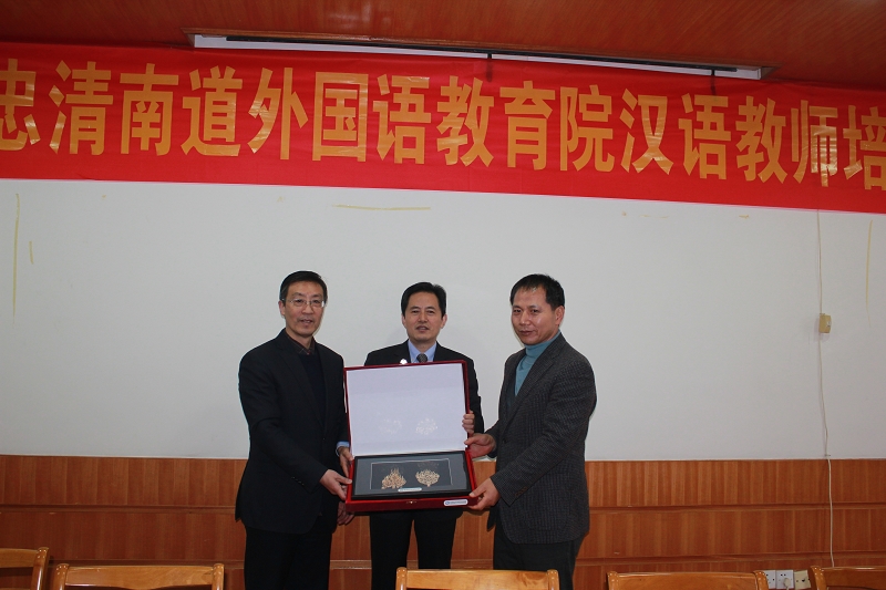 我校韩国忠清南道外国语教育院汉语教师培训基地于201411月在国际教育学院正式挂牌。此次培训共有10位在韩国教授汉语的中小学老师参加,历时15天,内容包括汉语语音、汉字、词汇、语法等各语言要素的学习,听、说、读、写等各语言技能课程的教学方法和教学技巧,此外,还有中国传统文化课和文化考察。