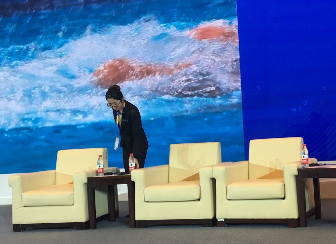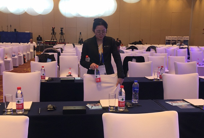 参与本次大会服务任务的同学被安排在不同岗位,承担着不同的工作,为国际泳联主席胡里奥·马格里奥尼及参与此次会议的各国代表提供细心周全的服务。前厅部的陈晓、徐丹丹、时萍、冯振新负责协助酒店接待与入住工作;餐饮部宴会厅张玲玲、陈圆圆、曹佳佳、陈馨、殷宝凤负责与会嘉宾用餐,陶玉亭、张玲、翟凌晨负责看管主会场、分会场、泳联行政办公室,石方明参与泳联会场布置,王子祥负责解决客人在会议期间遇到的问题。从大会的筹备到闭幕近一个月,每一位参与其中的同学都非常珍惜此次大会服务的机会,他们主动担当、相互协作、齐头并进,不惧艰苦,任劳任怨,尽自己最大的努力将服务做到最好,为师大争光,为90年校庆献礼。
