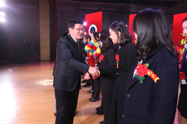 校领导与校首届“三全育人”最美教师(教育工作者)焦华富、朱昌青、李平、陈文兵、路丙辉、朱国萍、伍旭中、张佩云、徐成进、宫超,分别为先进集体和先进个人颁奖。证书、奖牌、花环,传递着学校对学子们的期盼与肯定,寄托着老师对学子们的鼓励与祝福。