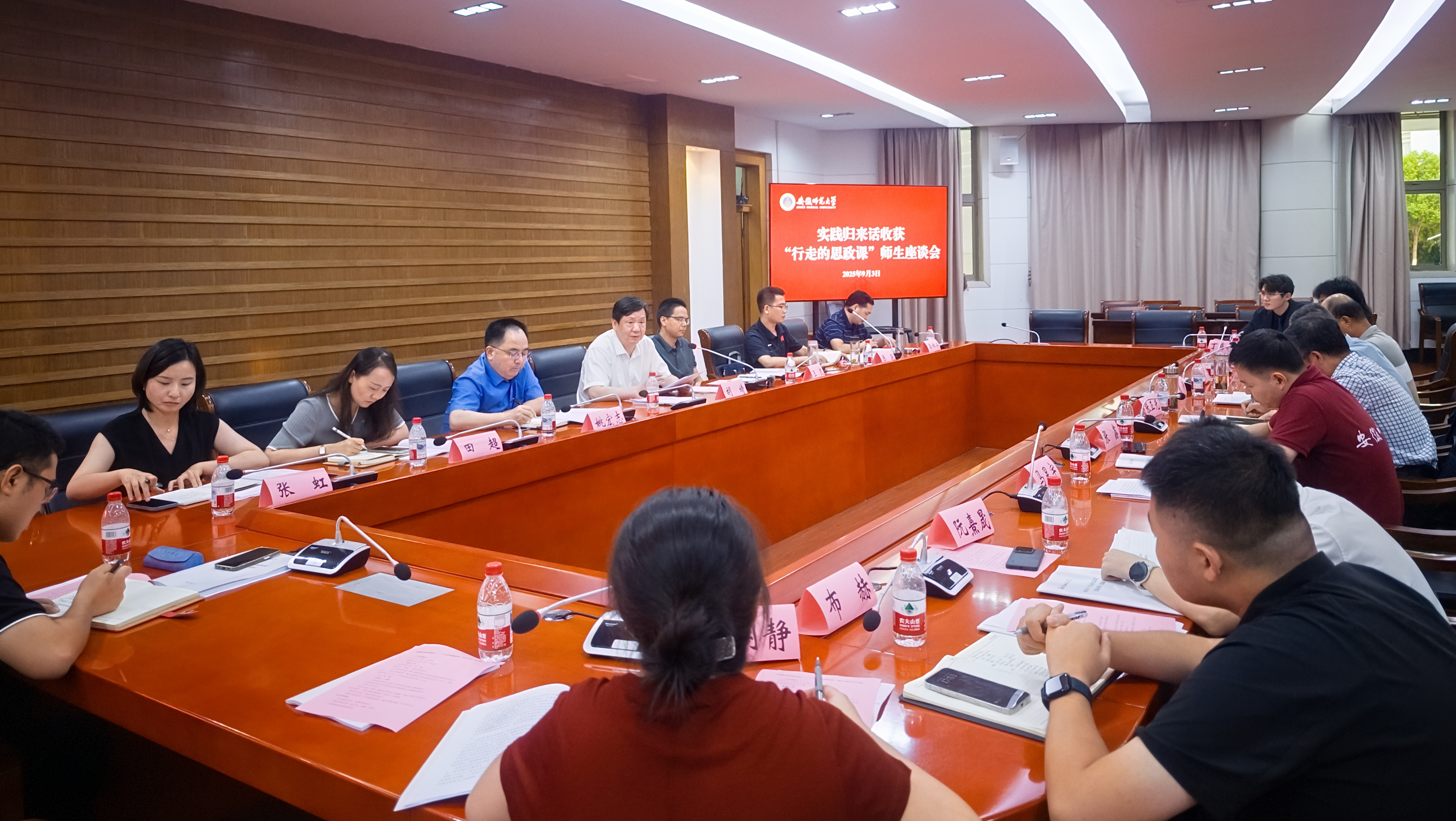 9月3日,学校召开“行走的思政课”师生座谈会,校党委副书记胡靖与师生代表座谈,共话收获和成长。宣传部、团委、马院负责同志,思政理论课教师代表、专业教师代表、辅导员和团干部代表、实践学生代表等参加座谈。党委宣传部常务副部长汪凯主持座谈会。