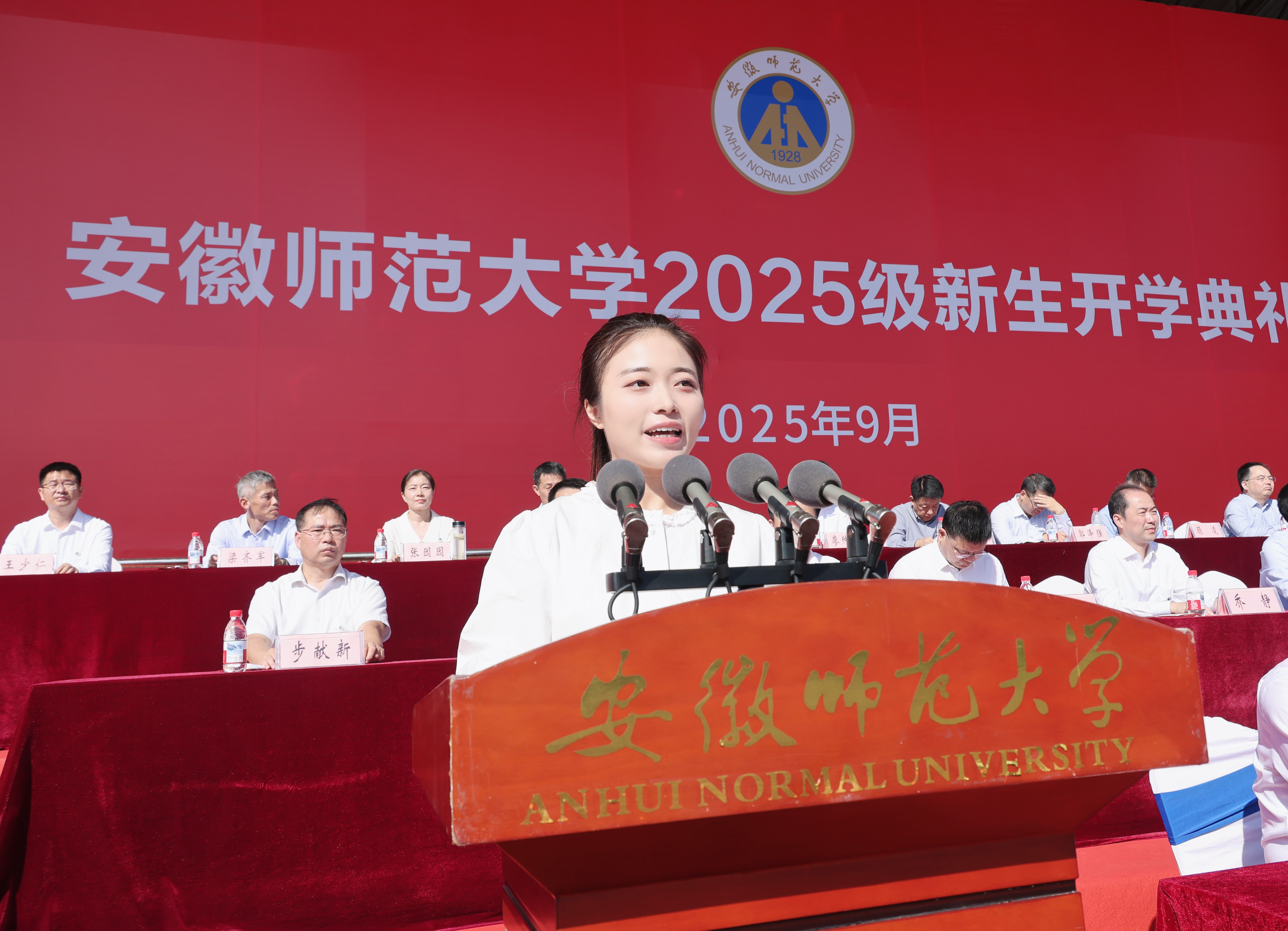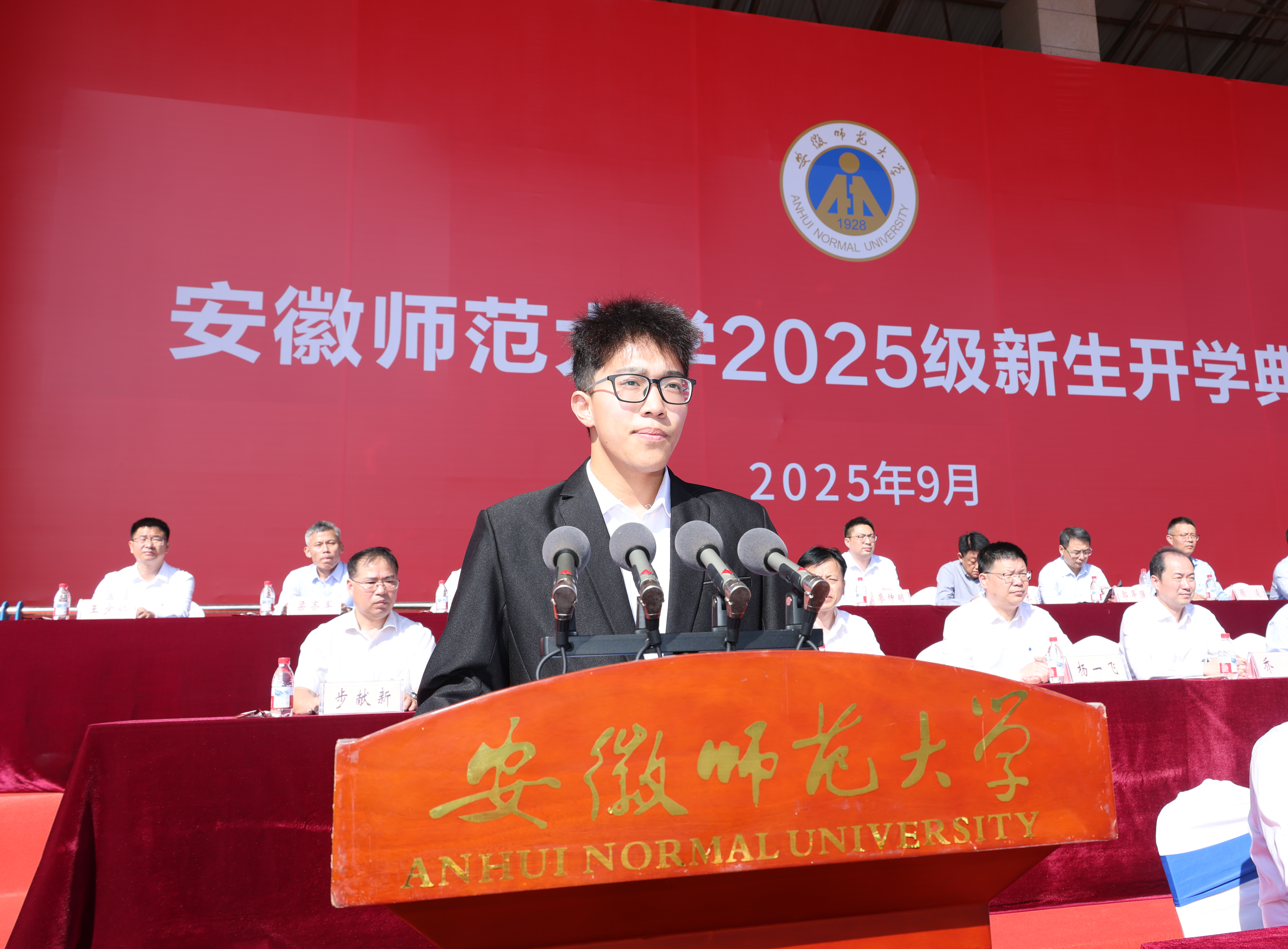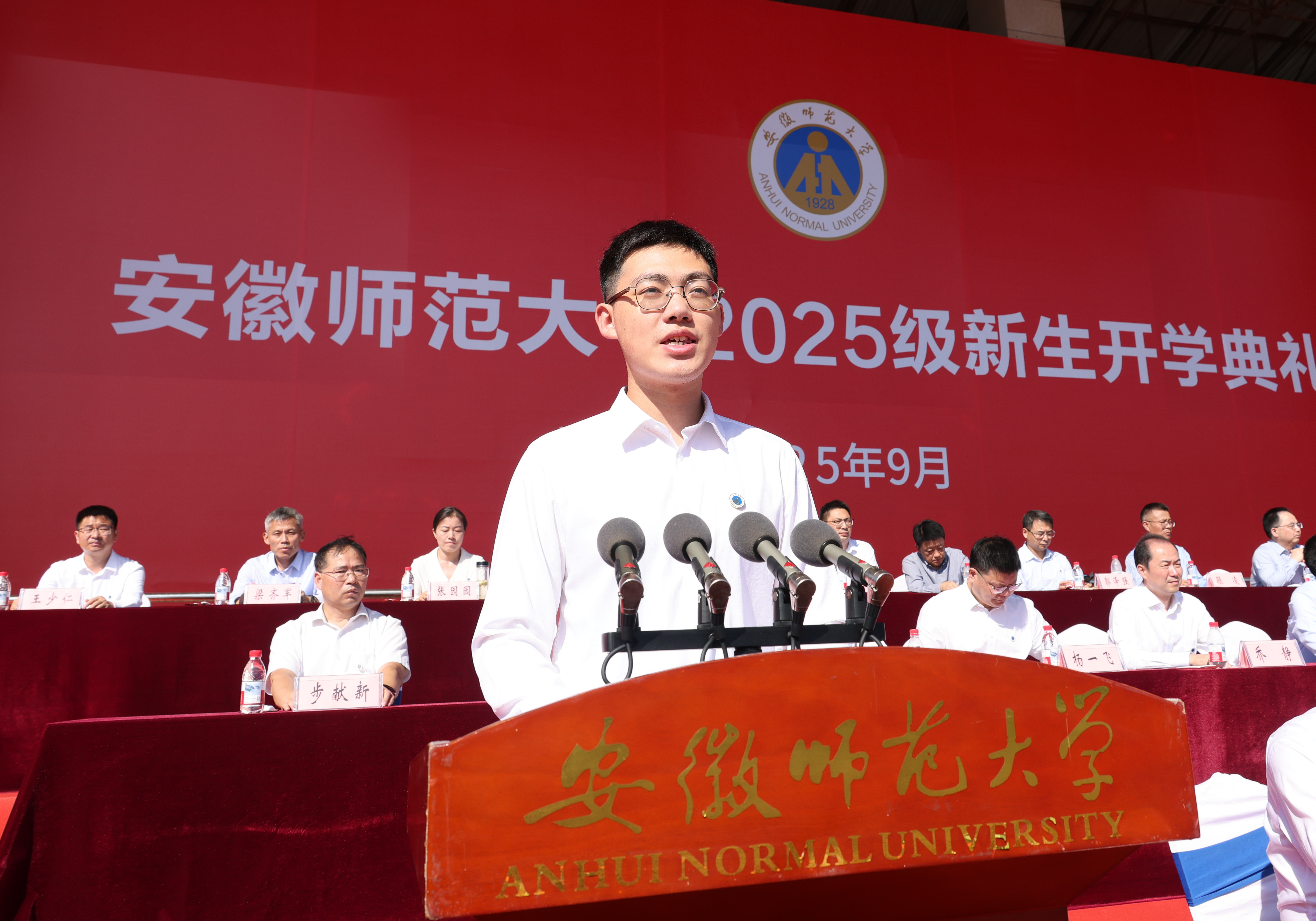“同学们,从此刻起,你们的青春轨迹,已与安徽师范大学紧密相连。”教师代表、生命科学学院李枢强教授对新同学表示热烈欢迎,并寄语新生“珍惜时间、珍惜友谊、珍惜学校和老师的培养”。他结合自己44年前的求学经历和数十年的科研生涯,勉励同学们在大学阶段脚踏实地、追求卓越,养成终身受益的习惯,成长为有理想、有本领、有担当的时代新人。
