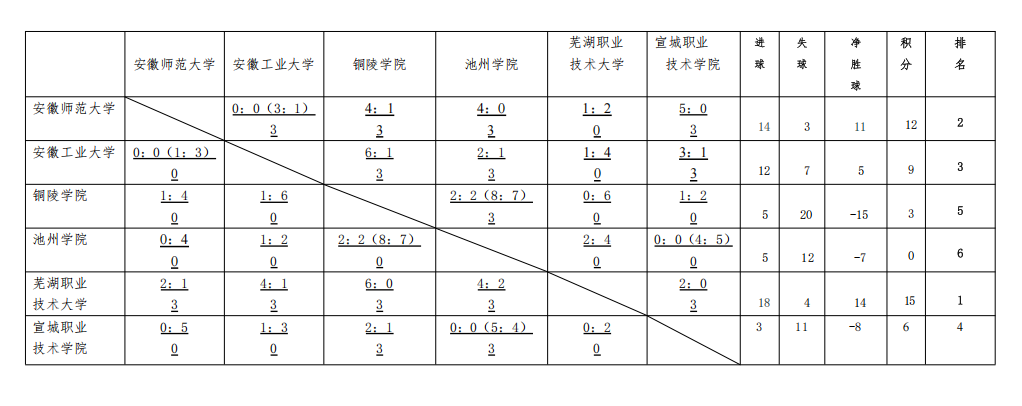 2025年安徽省青少年足球联赛大学组(赛区二)最终积分榜