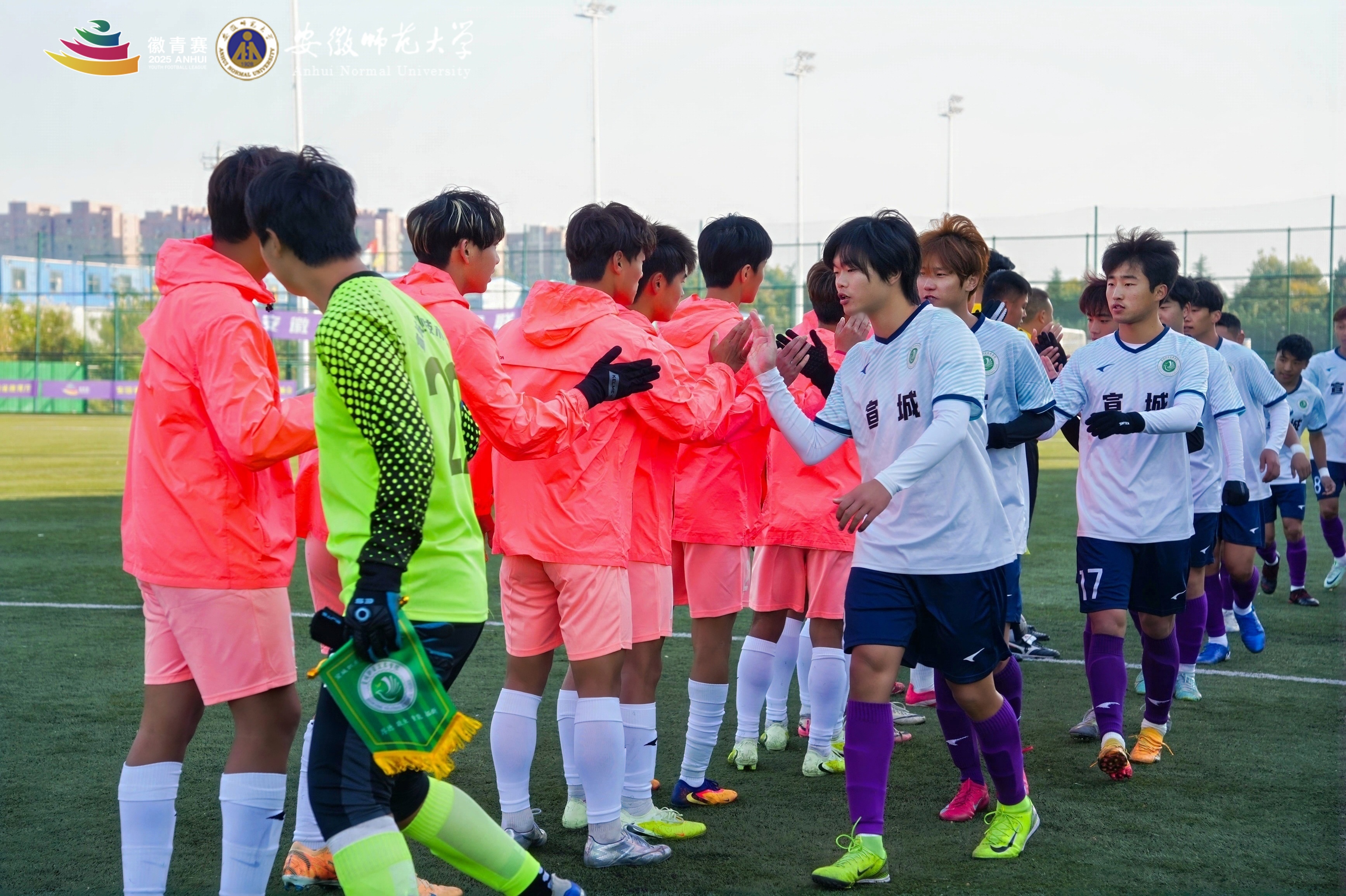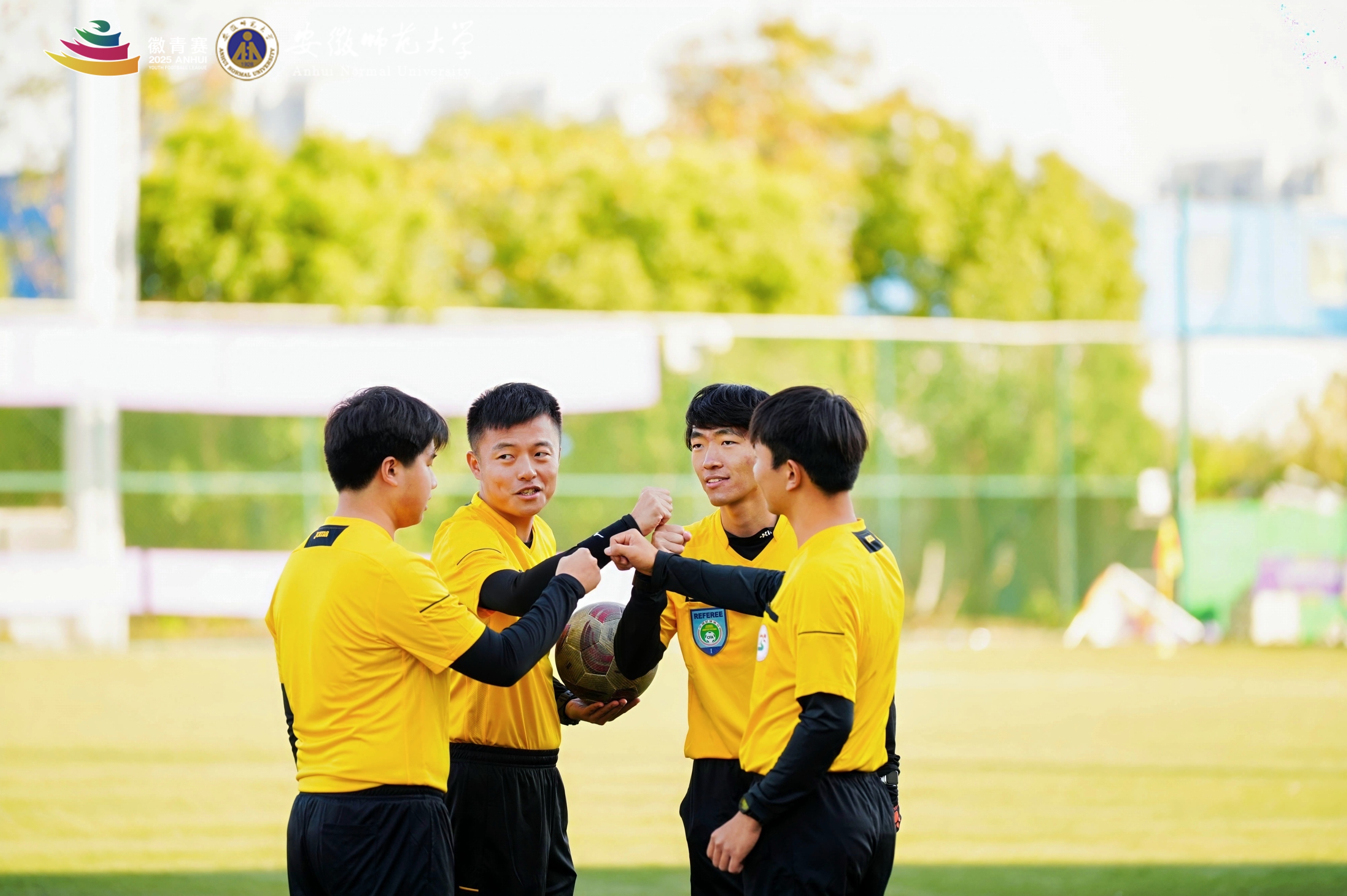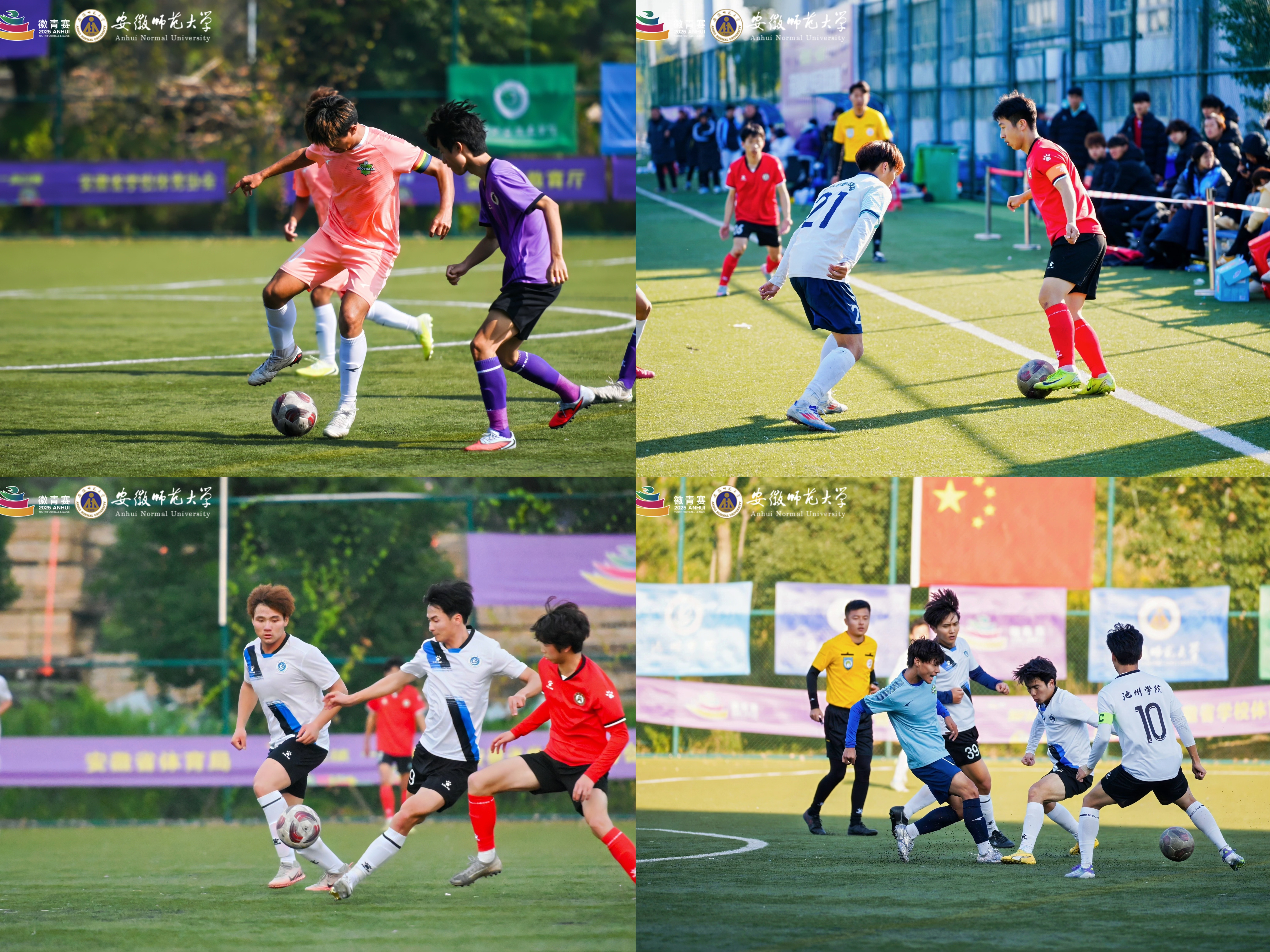 11⽉19⽇下午,随着终场哨声在安徽师范⼤学花津校区南体育场响起,2025年安徽省⻘少年⾜球联赛(“徽⻘赛”)⼤学组第⼆赛区⽐赛顺利收官。本次赛事由我校承办,历时五天,进程紧凑有序,竞赛氛围友好热烈,最终圆满落下帷幕。