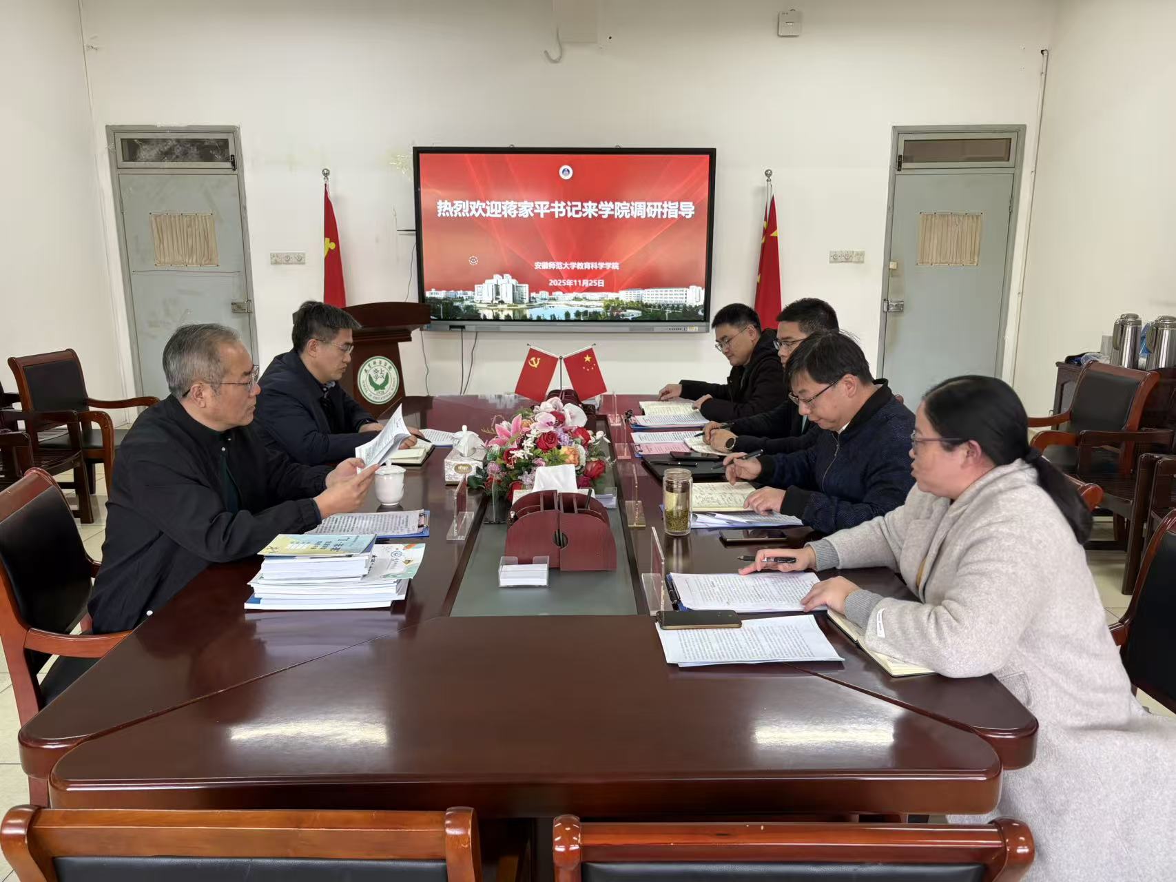 11月25日,校党委书记蒋家平到赭山校区开展工作调研,先后走访了教育科学学院、学报编辑部。