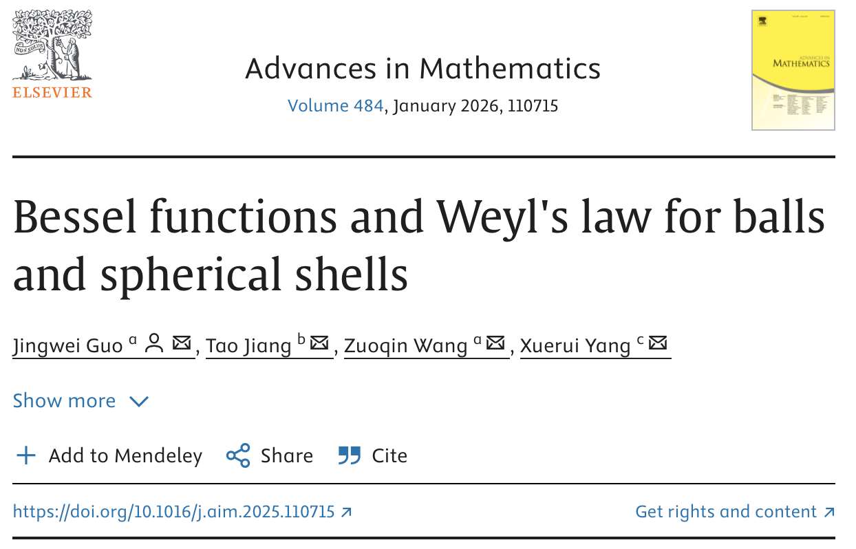 【振兴计划师大行】数统学院江涛博士在国际顶级数学期刊Advances in Mathematics发表重要研究成果