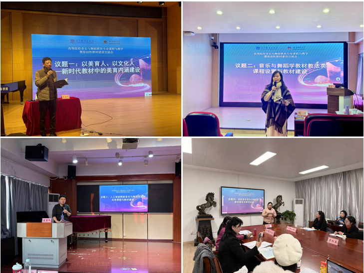 大会设四个分论坛分别围绕“以美育⼈、以⽂化⼈——新时代教材中的美育内涵建设”“音乐与舞蹈学、教材教法类课程设置与教材建设”“⼈⼯智能赋能⾳乐与舞蹈技能技法类课程与教材建设 ”“⾼职⾼专⾳乐与舞蹈类教材建设及教学实践”展开交流。