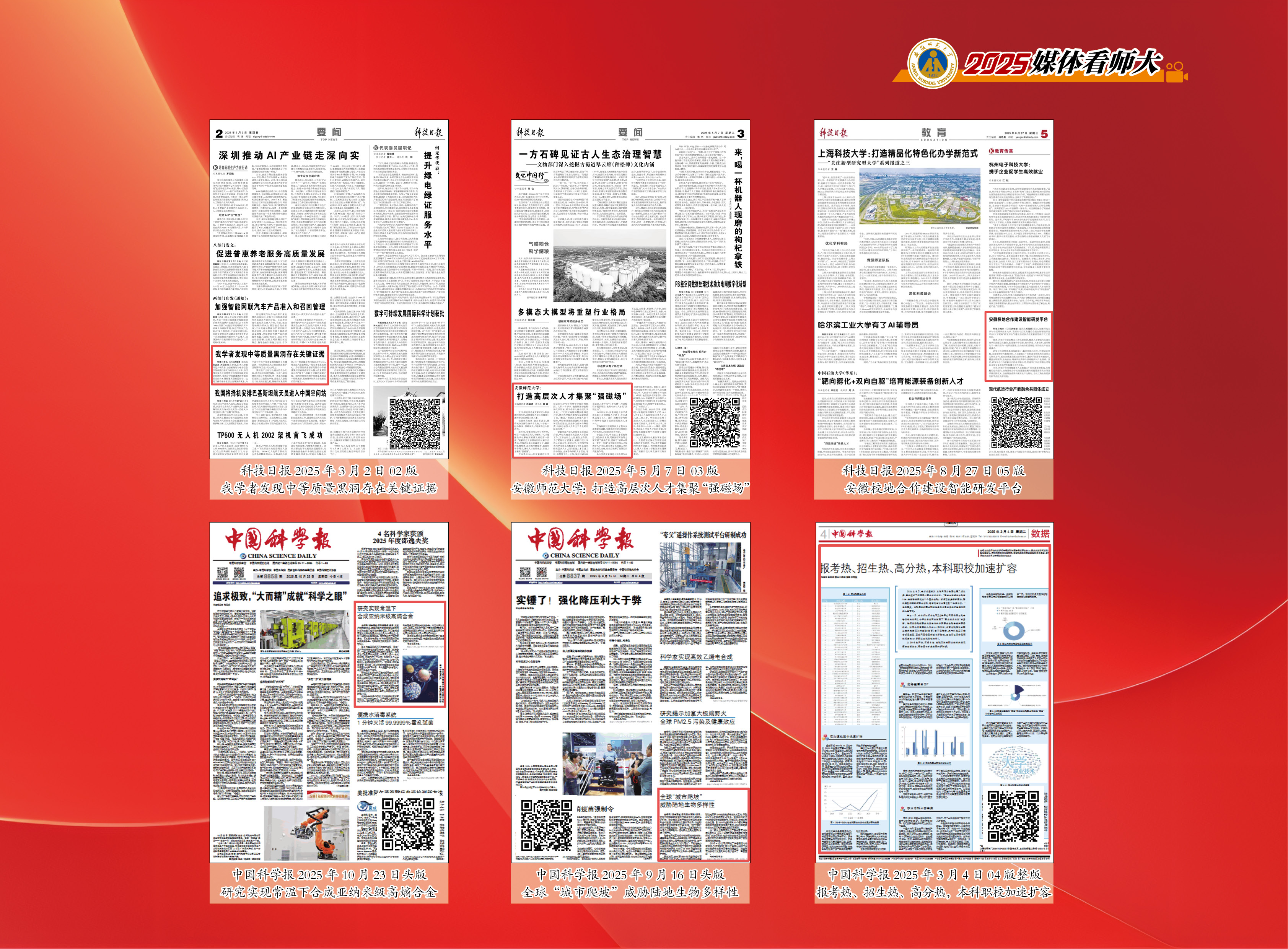据统计,2025年我校获省级以上主流媒体报道920篇次,《人民日报》《光明日报》等国家级主流纸媒、央视和安徽日报、安徽新闻联播报道112篇次,其中整版报道2次,头版16次,头条7次,实现了关注热度与报道质量的双提升。这些报道的背后,是学校党委锐意改革的领航赋能,是学科、科研、育人、社会服务协同发展的实力积淀,是全校上下的凝心聚力、实干笃行,更是为全力争创“双一流”而源源不断注入的师大动能。