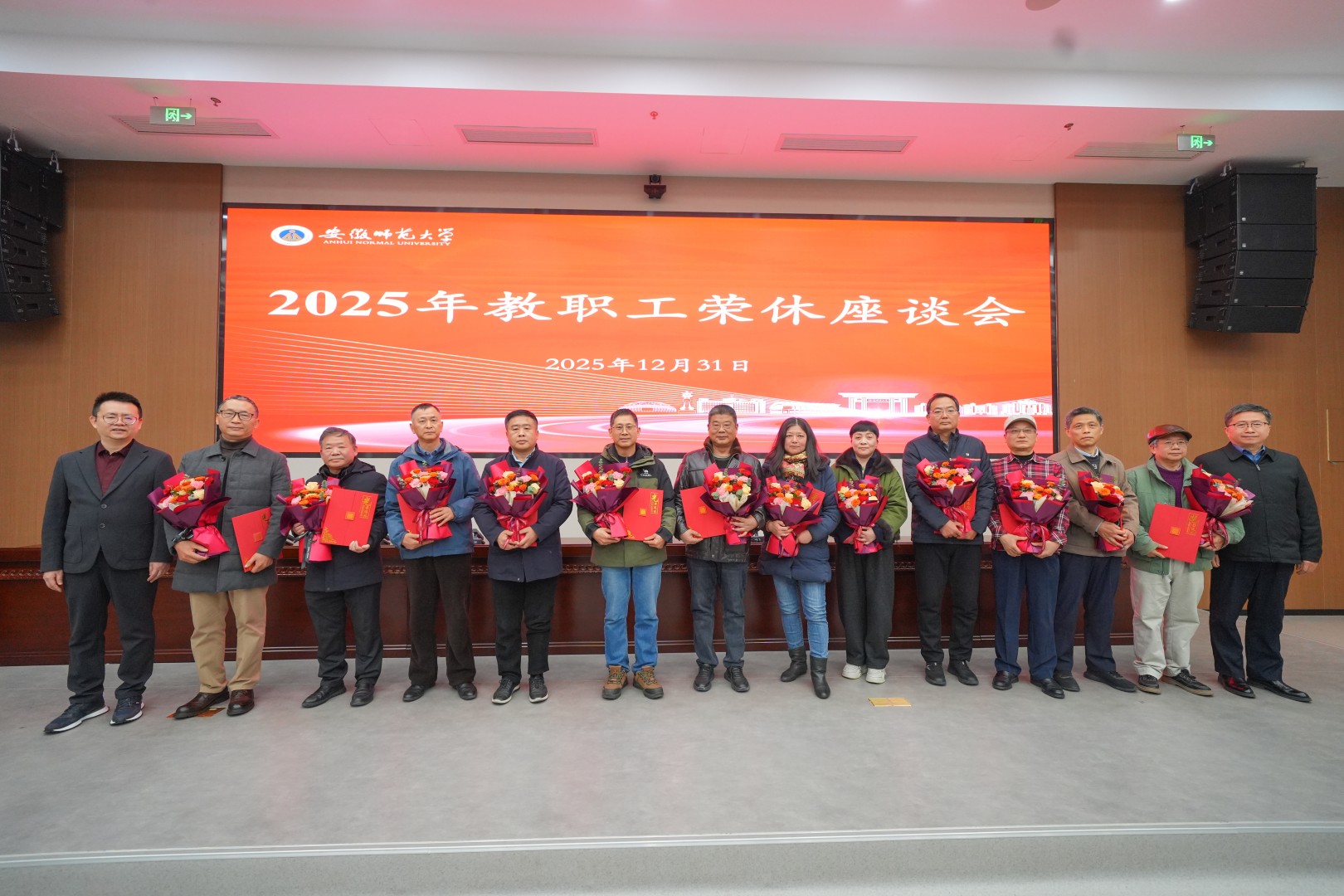 为致敬奉献、传承薪火,12月31日,学校举行2025年教职工荣休座谈会。校党委副书记、校长熊宇杰,校党委副书记曾黎明,校党委常委、副校长高峰,2025年荣休教职工、各有关部门负责同志、荣休教职工所在单位负责同志、青年教师代表参加座谈会。座谈会由高峰主持。
