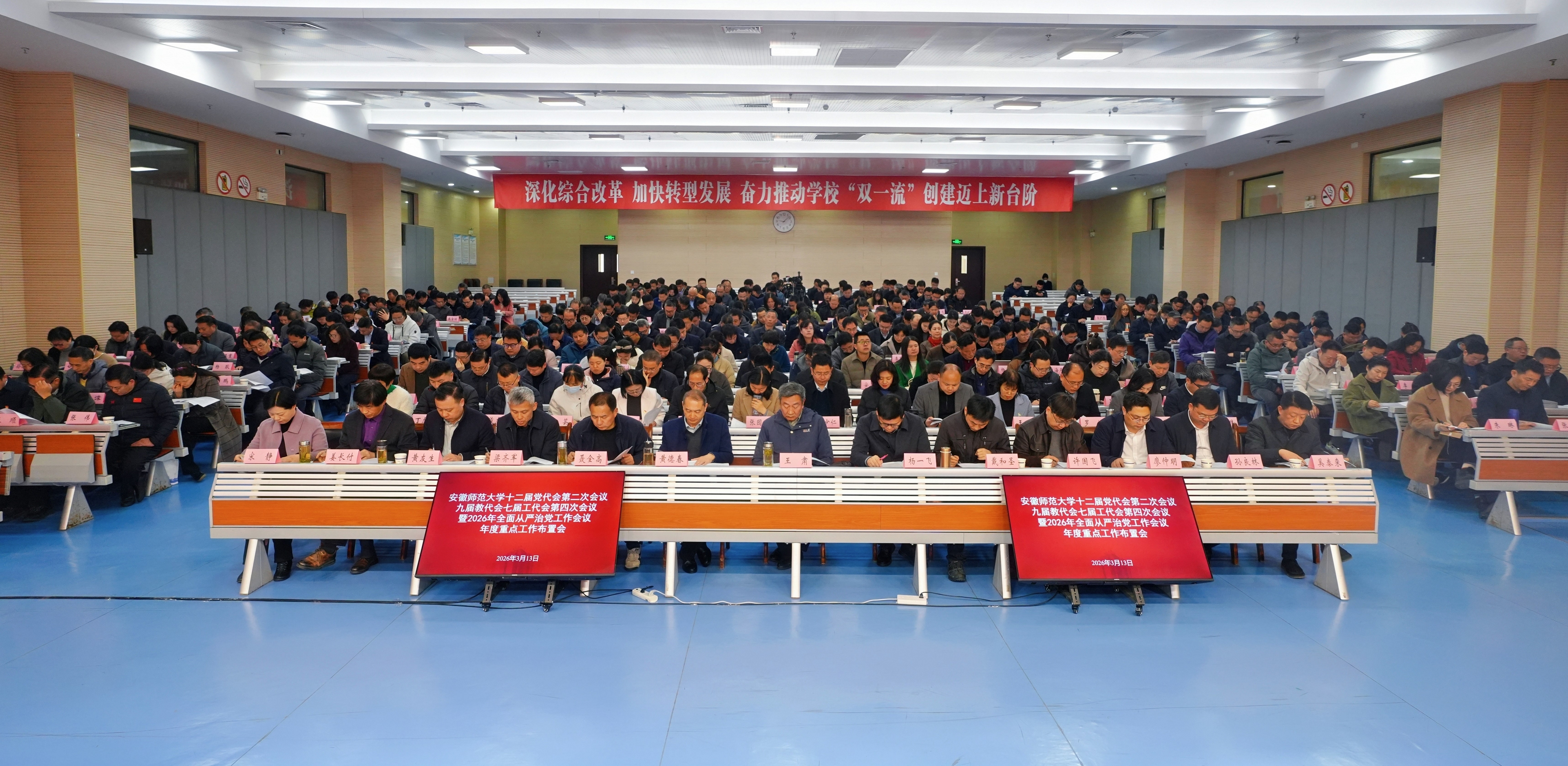 在第二次全体会议上,代表们审议通过了《安徽师范大学十二届党代会第二次会议、九届教代会七届工代会第四次会议决议》。