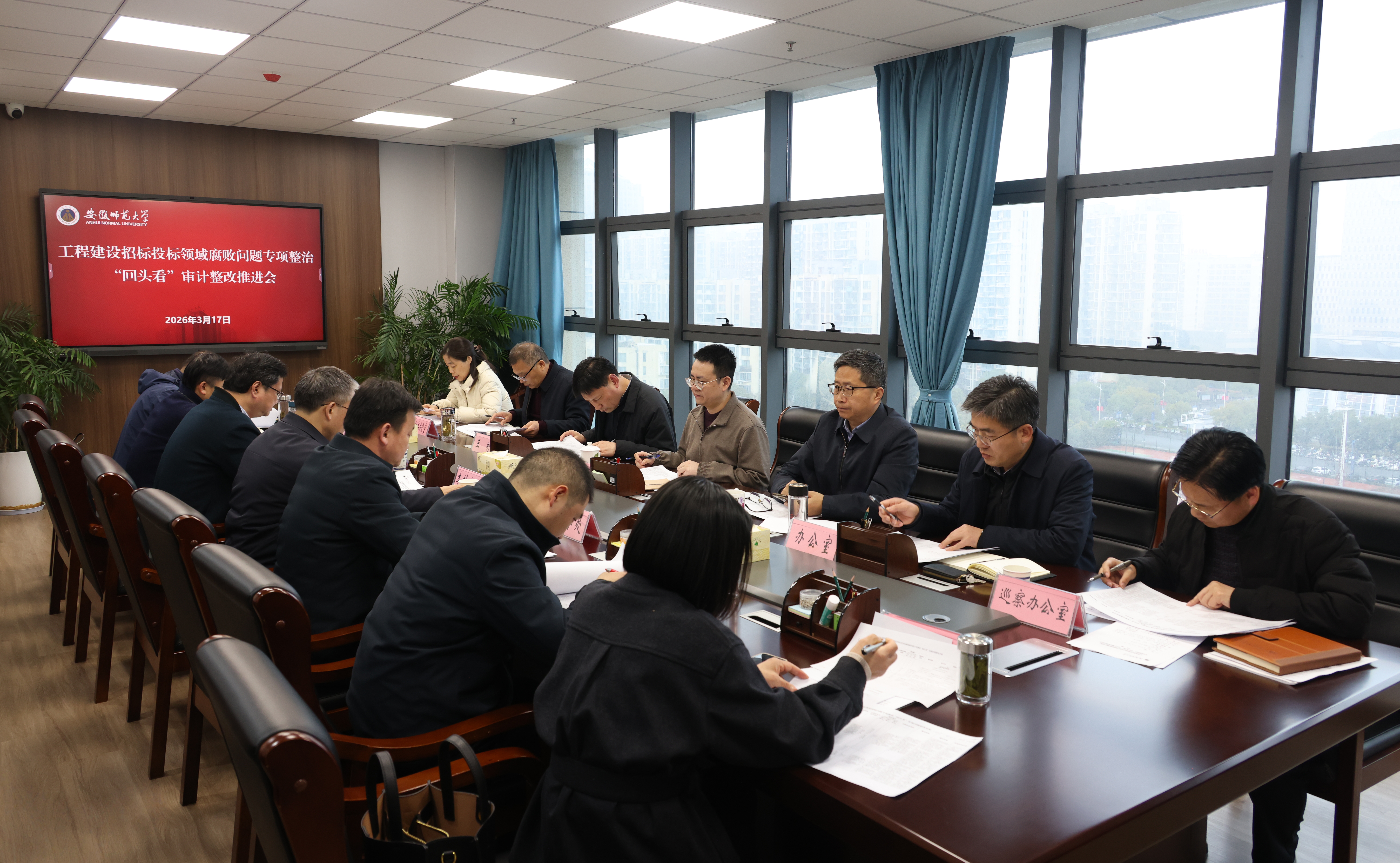3月17日下午,学校召开工程建设招标投标领域腐败问题专项整治 “回头看”审计整改推进会,校党委副书记、校长熊宇杰主持会议并讲话。校党委副书记曾黎明,校党委常委、副校长王刚,校党委常委、办公室主任邵登辉,相关单位负责人出席会议。