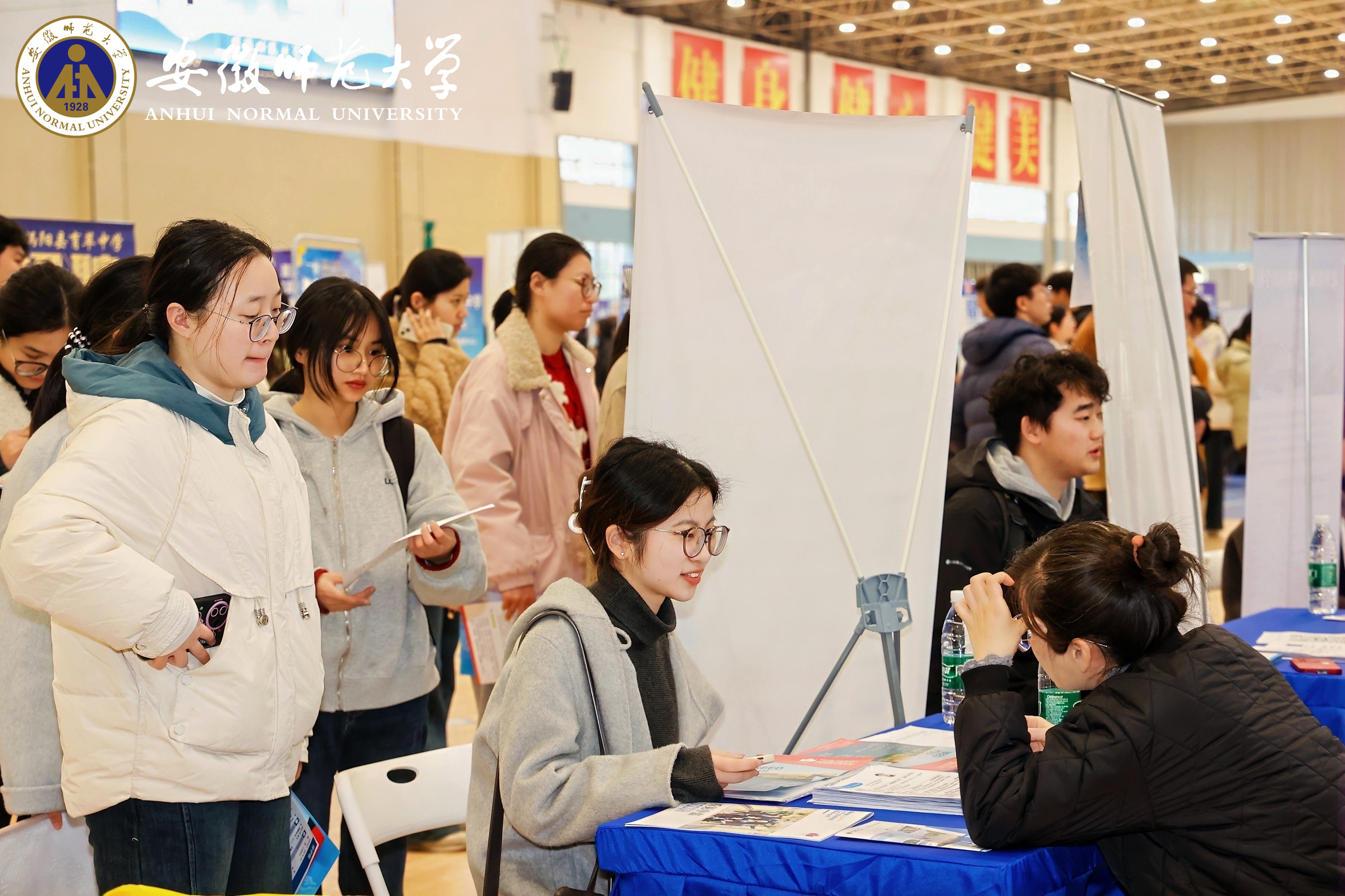 为深入贯彻党中央、国务院关于高校毕业生就业工作的决策部署,全面落实教育部“春季促就业攻坚行动”要求,积极服务安徽省“人才兴皖”战略,3月21日,由安徽省教育厅主办、我校承办的“人才兴皖‘就’在江淮”安徽省2026届高校毕业生师范类专场招聘会在花津校区北体育馆成功举办。安徽省大中专毕业生就业指导中心综合办主任彭飞,校党委常委、副校长高峰、王刚深入招聘现场,与用人单位代表、求职毕业生亲切交流,实地了解岗位供给、求职需求及签约意向等情况。