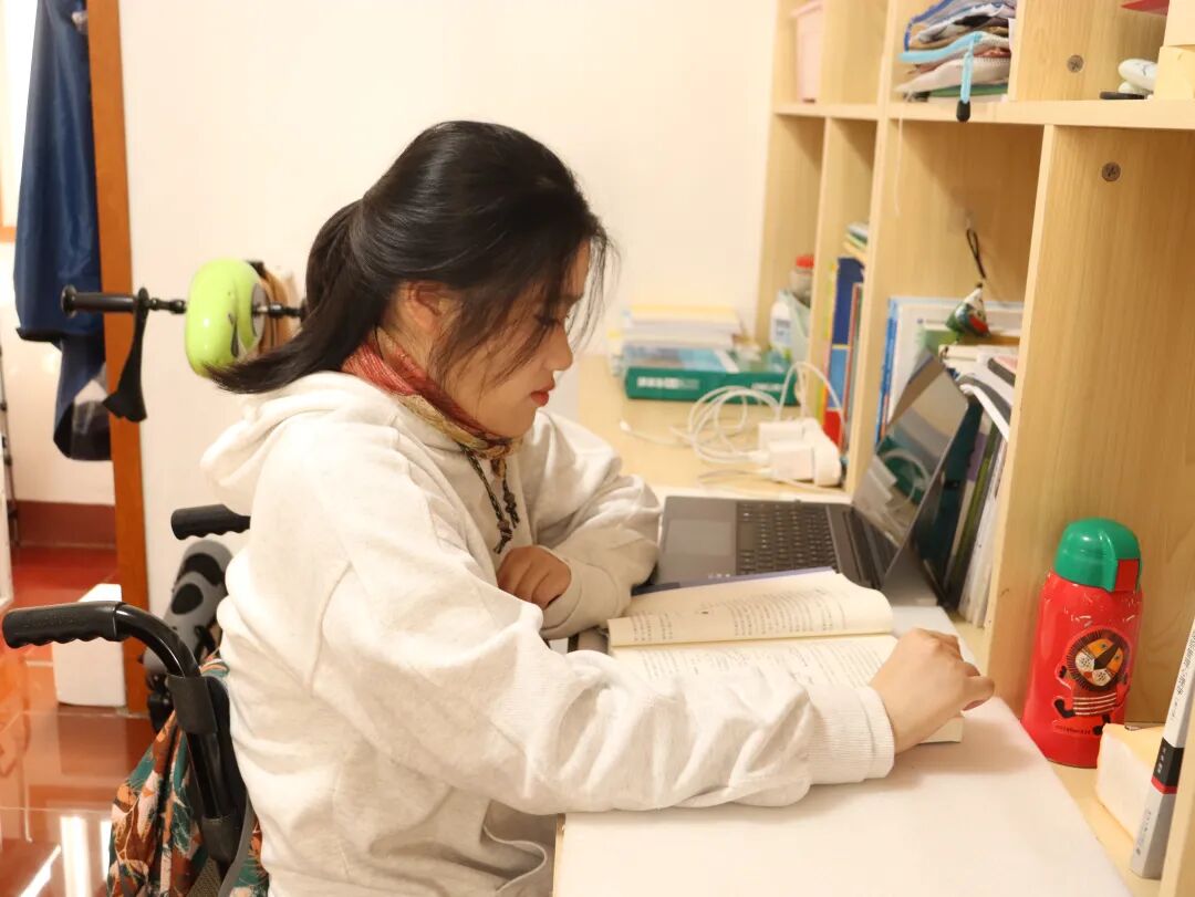 4年前高考前夕,意外的摔倒导致许詹琪颈椎骨折,胸部以下从此失去知觉,手指无法用力,通往大学的路在她眼前轰然关闭。迷茫与痛苦的日子里,是父母无微不至地守护、师长同学不间断的鼓励,点亮了她希望的微光。“我能行”“我不能放弃”的朴素信念,成为她穿越黑暗最强大的力量。最终她选择结束治疗,重返高考征程。半年里,病房成书房,病床成书桌。用双肘和嘴握笔,用固定装置绑住腰背坐立,磨破皮渗出血依旧坚持。日复一日,支撑她清醒的,不是药物,而是心中不灭的求知之火。“学习会让我忘记疼痛,我想要去外面的世界看一看,这就是我坚持的动力。”2023年8月她以超过江西省一本线39分考取安徽师范大学。