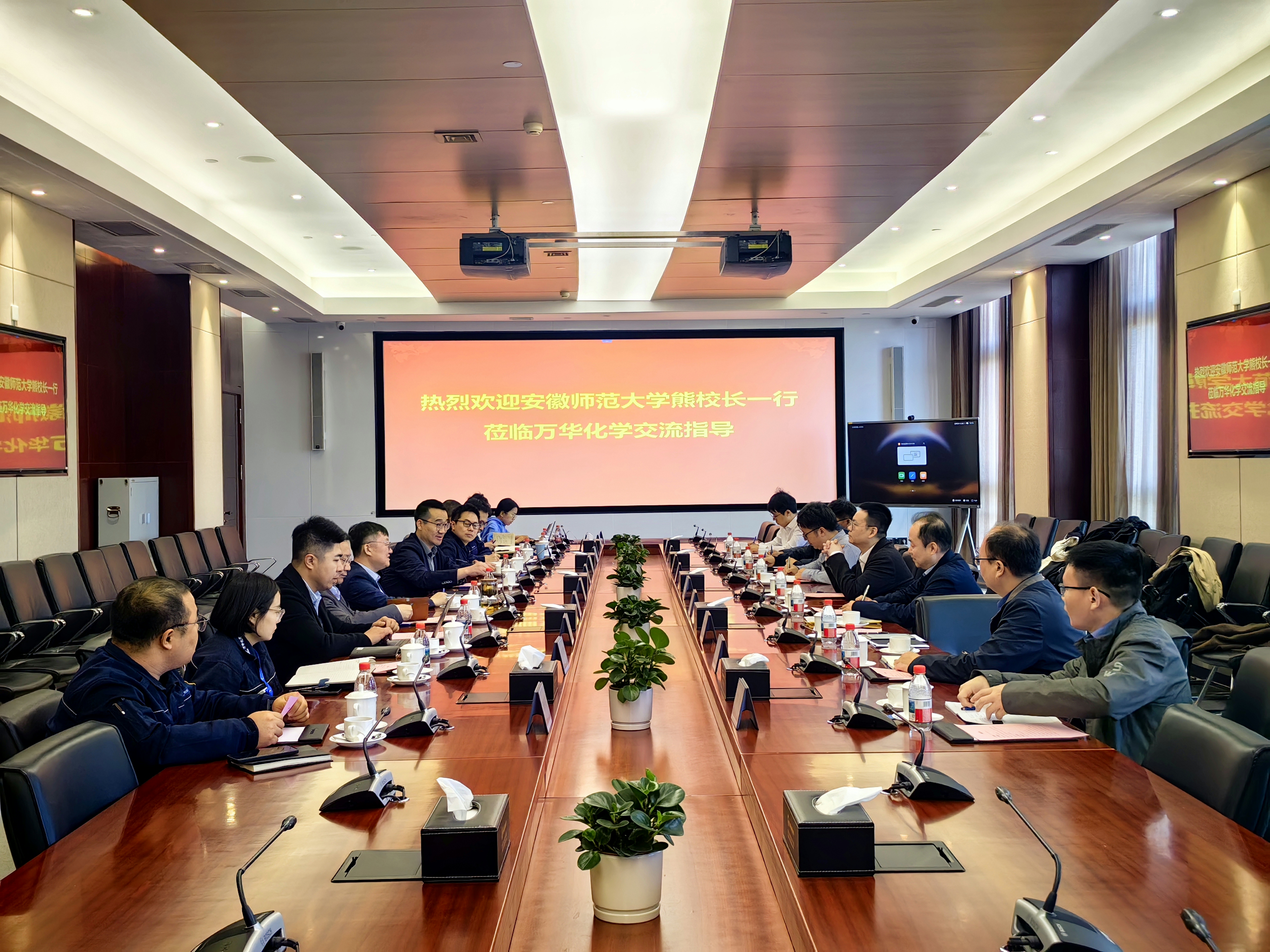 华卫琦对熊宇杰一行来到万华磁山全球研发中心开展合作交流表示热烈欢迎,并简要介绍了万华集团发展情况。他指出万华集团始终扎根新材料领域,围绕产业升级、既有产品新应用拓展、新兴领域布局三方面推进产学研协同创新。希望万华的产业化平台、工业实践经验和市场需求洞察,与安师大的学术积淀、创新思维能形成有效优势互补,积极寻求技术瓶颈突破,推动实验室成果转化为产业发展的实际生产力。