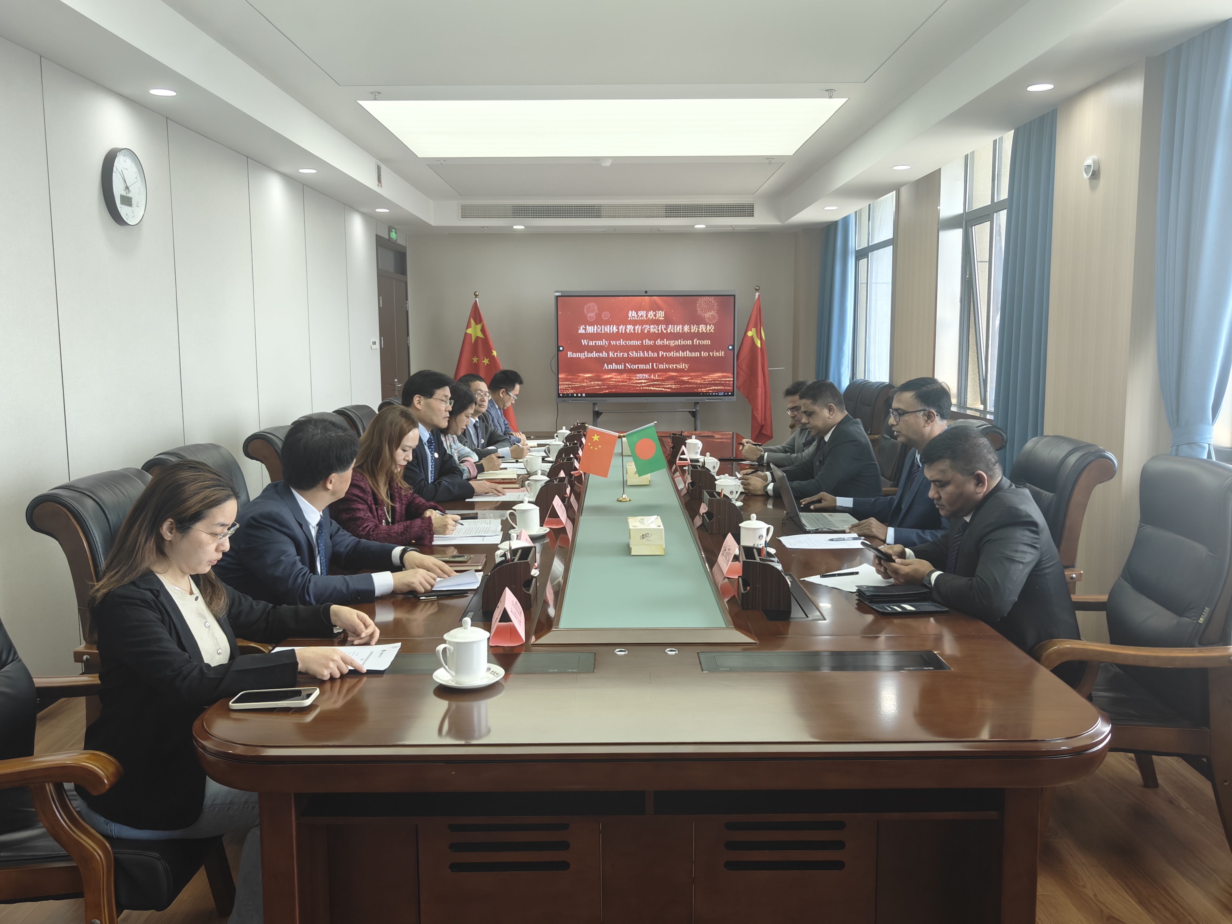 4月1日上午,校党委常委、副校长田兴友在文典楼1102会议室会见代表团成员,并举行两校座谈会。参加座谈会的有国际交流与合作处和体育学院负责人及相关人员。座谈会由国际交流与合作处处长杜俊主持。田兴友对代表团的来访表示热烈欢迎。他表示,近年来,中孟共建“一带一路”及各领域务实合作不断拓展,全面战略合作伙伴关系不断深化。体育教育学院是孟加拉国著名的运动员培训机构,为有潜力的运动员提供全面培训,推动了孟加拉国体育事业的发展。他真诚希望孟加拉国体育教育学院和我校以此次座谈为契机,进一步加强交流、深化沟通,开展更多务实合作,为两校高质量发展注入强劲动力。穆罕默德•赛义夫•乌拉院长非常感谢安师大的盛情邀请和接待,他表示体育教育学院将全力支持和安师大的合作。他期待通过此次交流,双方能增进互信、凝聚共识,在体育教师和教练员培训、青年营、运动科学和科研合作等领域开展全方位的交流。座谈会上,两校参会人员围绕人才合作培养、教职工互派交流等事宜进行了具体磋商。