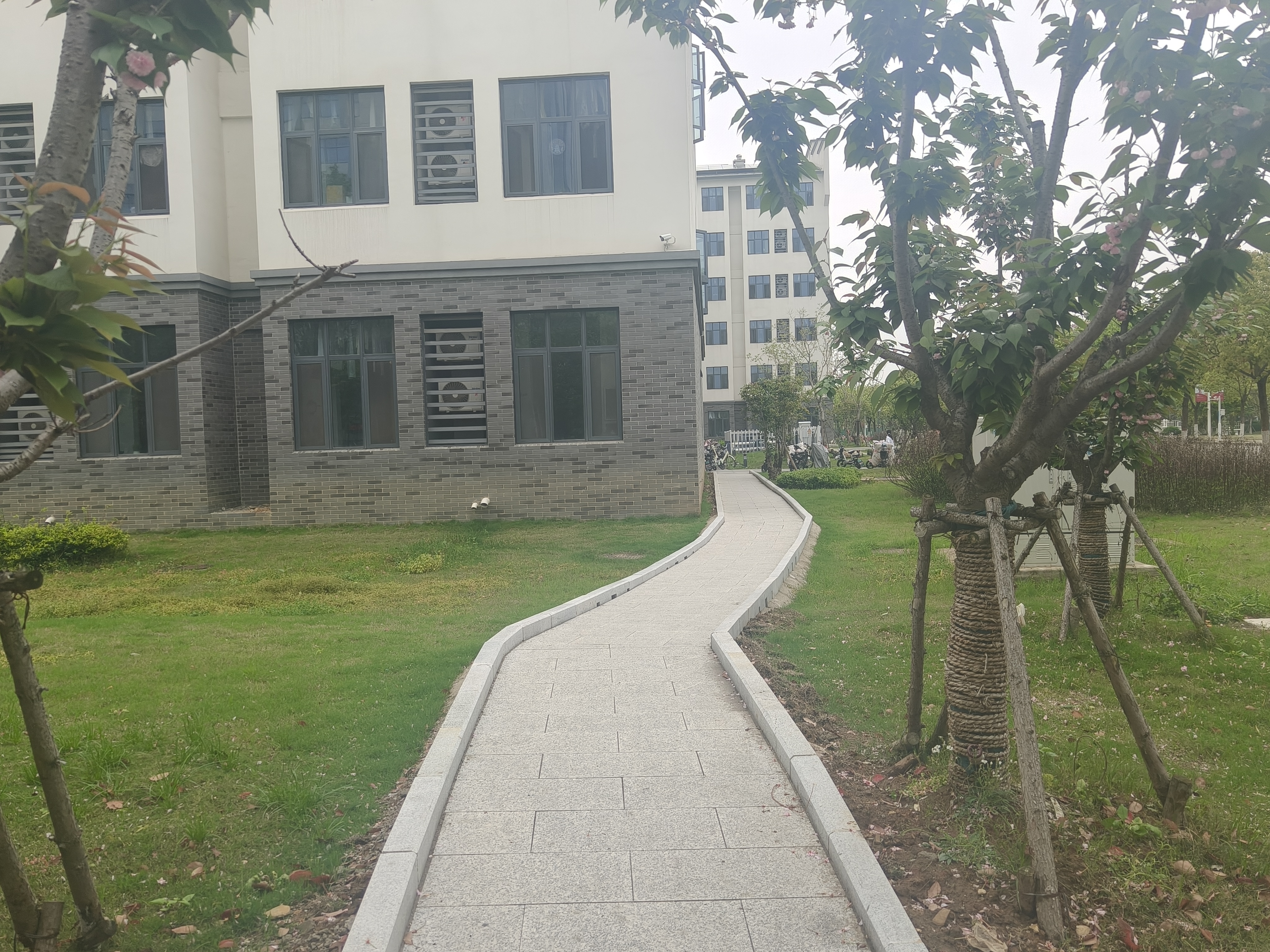 一天傍晚,总务处工作人员在冬和园的草坪上巡查时,发现了几道被反复踩出的土路——那是学生为赶课时“抄近道”留下的足迹,虽不美观,却格外显眼。工作人员没有简单拉起警戒线或补种草皮,而是蹲下身来,顺着足迹走了一遍,丈量路线、记录走向。“学生既然这么走,说明这里真的需要一条路。”他们当场定下方案:顺着学生常走的路线铺设正式步道。几天后,一条崭新的石板路蜿蜒铺开,“学生想走的路”变成了“学校修好的路”。同样的故事也发生在夜间巡查中:一盏路灯不亮、一块井盖破损、一处设施故障,只要被发现,工作人员便当场拍照登记,维修队伍随即到场——换灯、补盖、修复,直至隐患彻底消除,全程闭环。用脚步丈量需求,用速度回应隐患,总务处不止于“接诉即办”,更追求“未诉先办”。即便没有扫码,温度也已提前抵达。