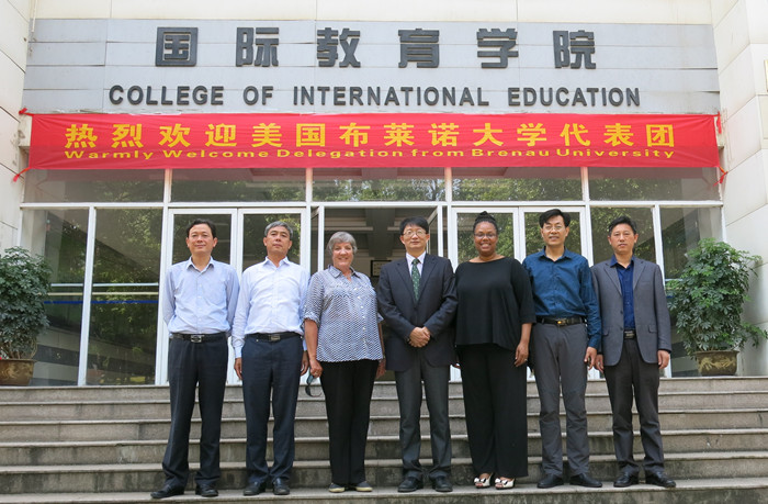 本网讯(国际教育学院 李一鸣) 5 9 -11日,美国布莱诺大学师生团来我校交流、访问。访问团成员有副校长罗伊斯·劳伦·法尔女士、副教务长克里斯托·图姆斯女士、国际学生及国际项目主管乔丹·玛丽·安德森女士及11名大学生。