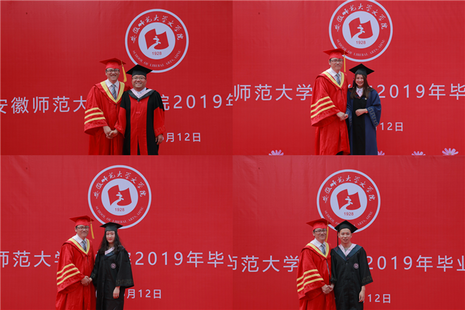 千山万水,真情永系。为响应文明离校的号召,将怀念和感慨化于行,文学院向2019届全体毕业生发起毕业生文明离校倡议书。引导毕业生配合学院工作,有序离校,知恩于心,感恩于行。铭记校训,初心不忘,砥砺前行。6月12日上午,文学院2019年毕业典礼于学院行政楼门口举行。院党委书记余大芹倾情寄语毕业生,“无论未来身处何地,文学院是大家永远温暖的家,更是大家的心灵港湾。”深情表达对同学们的美好祝愿。文学院院长储泰松为每一位毕业生正冠拔穗,并合影留念,对同学们顺利毕业表示祝贺,也祝愿全体毕业生前程似锦。