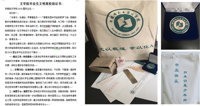 本网讯(文学院 徐秋玥 汪蕊 汪宇)回首过去,悠悠四载求学路;试看今朝,鹏飞万里风正举。又一个栀子飘香的六月悄然而至,文学院情融于行、以行传情,开展一系列活动,欢送2019届毕业生,倡导文明离校,为即将踏上征程的师大学子送上最诚挚的祝福,助力学子为梦想前行。