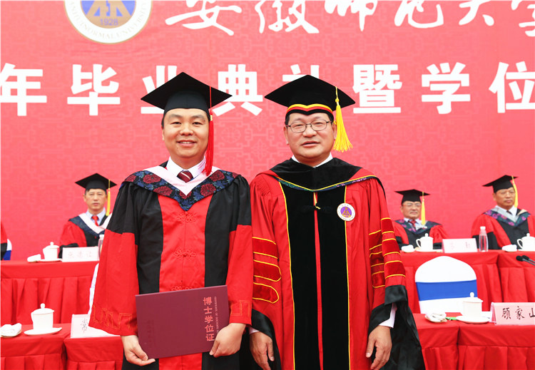 本网讯(党委宣传部 张鑫) 6月12日上午,安徽师范大学2019年毕业生典礼暨学位授予仪式在花津校区北体育场隆重举行。校领导顾家山、张庆亮、李琳琦、毕明福、陆林、彭凤莲,1991届中文系校友、光明日报社安徽站站长常河出席典礼。校学位评定委员会委员,有关部门、单位主要负责人,各学院党政领导班子成员、教授委员会成员、教师代表、博士毕业生导师代表、全体毕业生辅导员,全体2019届毕业生、毕业生家长、家属代表参加典礼。典礼由校党委书记顾家山主持。