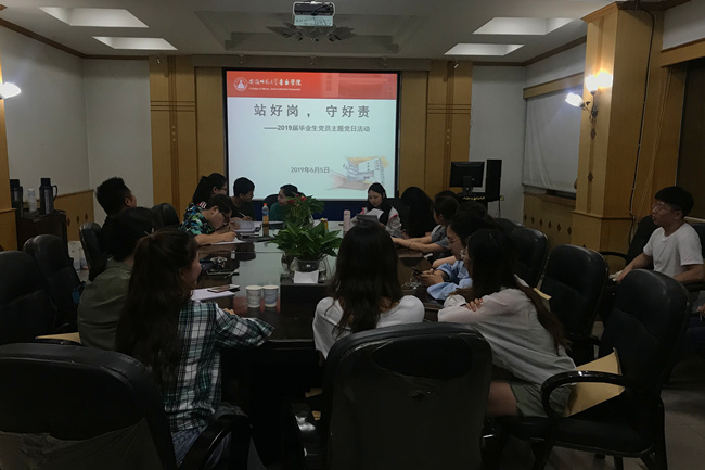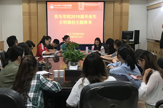 本网讯(音乐学院 张淼 陈景雪)不忘初心,牢记使命。为进一步加强毕业生文明离校教育,6月5日下午,音乐学院2019届毕业生党员在院二楼会议室开展毕业生“站好岗,守好责”党日主题活动,活动由学院党委组织员、2019届毕业生辅导员张淼主持。