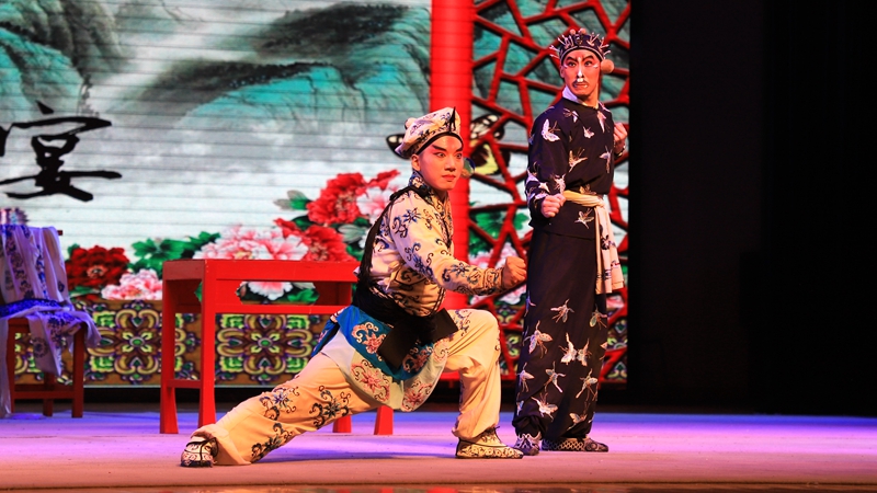 艺术家们随后上演了两出京剧经典剧目《三岔口》《红娘》。《三岔口》一剧中,表演动作刚劲有力、连绵淋漓,伴随着时而悠扬婉转,时而慷慨激扬的音乐,重现了一个无畏英雄的故事。《红娘》一剧呈现了封建时代的青年人为争取婚姻自主,敢于冲破礼教束缚的爱情故事,表达了对美好爱情的憧憬和追求。整场演出历时2小时,场下师生在演出结束后向艺术家们报以经久不息的掌声。