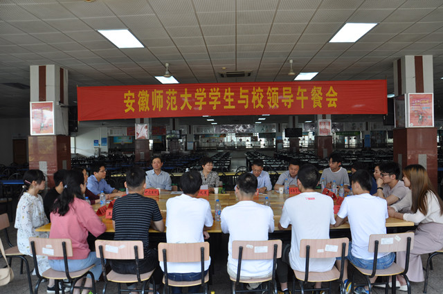 本网讯(学生校长助理)5月22日午间,我校第七期学生与校领导午餐会在花津校区学生第二食堂二楼餐厅举行。副校长彭凤莲、研究生院院长席贻龙、后勤集团总经理叶丹、物理与电子信息学院党委书记李娟、法学院执行院长严宏、教务处副处长崔光磊、化学与材料科学学院党委副书记余妍霞,与通过“问卷星”系统报名的11名本科生、研究生代表参加了本期午餐会。会议由学生校长助理周子豪主持。