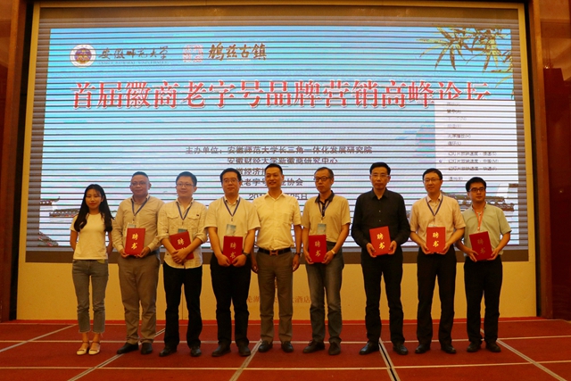 本网讯(经管学院新闻部 谷智超/文 田新敏 陈玥彤/图)5月25日下午,由安徽师范大学长三角一体化发展研究院、安徽师范大学徽商发展研究院、安徽财经大学新徽商研究中心、安徽经济报社、安徽老字号企业协会联合举办的首届徽商老字号品牌营销高峰论坛在芜湖市中央城大酒店国际厅隆重举行。安徽师范大学原副校长王世华、安徽经济报社社长马顺生、安徽老字号企业协会会长胡明朗、安徽财经大学新徽商研究中心副主任王唤明、安徽师范大学经济管理学院院长张廷龙、安徽师范大学徽商发展研究院院长马陵合等高校、政府、协会、企业代表出席会议。论坛由经济管理学院院长张廷龙主持。