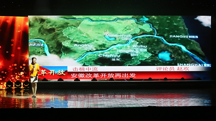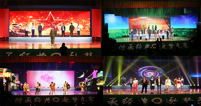 本次汇演综合了新闻播报、朗诵、走秀、歌曲等多种表演形式,在主题立意、章节设置、节目编排等方面融合了中国传统文化元素与新时代元素。演出以“回眸·致敬·传承”为线索,舞蹈《我们都是追梦人》通过活力的舞蹈和激昂的音乐拉开了演出的帷幕。第一篇章中,新闻栏目《共同关注》展现了安徽师范大学建校九十年来的辉煌历程,突出了新闻与传播学院建院以来丰硕的办学成果,同时展示了播音与主持艺术专业学子字正腔圆的新闻播报功底以及热情向上的青春风采。歌曲串烧《音乐留声机》动感十足,展开了一幅幅生动的历史画卷,勾起了一段段经典的历史记忆。年代秀《我们一起走过》,透过衣、食、住、行再现了改革开放四十年来风云变幻的波澜历史,回顾了作为农业农村改革发源地的安徽,自1978年以来,不断在重点领域和关键环节的改革上取得的新突破、新格局、新成就。