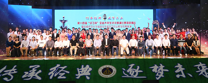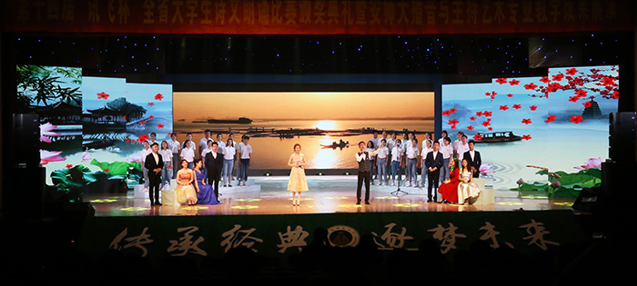 本网讯(新闻与传播学院 文/胡凡 周宗龙)用语言传承经典,用经典激昂青春。5月18日晚,第十四届“讯飞杯”全省大学生诗文朗诵比赛颁奖典礼暨安徽师范大学播音与主持艺术专业教学成果展演在花津大剧院成功举办。本次活动由安徽省语言文字工作委员会办公室、安徽省教育科学研究院、安徽省朗诵艺术学会、安徽省普通话培训测试中心主办,由安徽师范大学教务处、新闻与传播学院、文学院以及中国诗学研究中心承办。安徽广播电视台著名播音员、安徽省朗诵艺术学会会长、国家级普通话测试员魏民等业界专家,安徽师范大学党委书记顾家山、副校长毕明福、副校长陆林,学校办公室、组织部、宣传部、发规处、教务处、学生处、招就处、科研处、社会合作处、保卫处、离退休工作处、校团委,中国诗学研究中心等部门(单位)领导、新闻与传播学院和文学院师生代表以及参加比赛的评委嘉宾、参赛选手等七百余人共同观看了典礼和汇报演出。