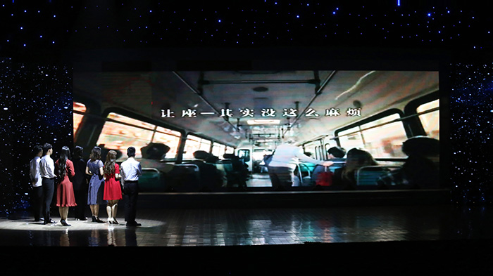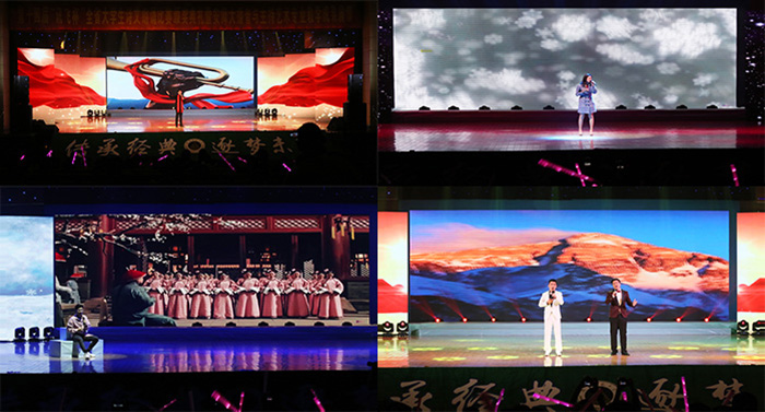 第二篇章中,配音节目《神奇一甲在哪里》,风趣幽默,透过精彩纷呈的趣味配音,展现了师大播音学子扎实深厚的专业能力,凸显了当代大学生继承优秀文学传统、弘扬祖国传统文化的使命。《经典诵读进校园》节目中,魏民、姚静云、安妮、鲍远明等业界名家凭借深厚的专业造诣,诵读文化经典,带来了一场听觉盛宴,他们或婉转动听,或轻柔细腻,或铿锵有力,或热情豪放。灯火璀璨,余音悠扬,在“声美情深”的旋律中,现场师生们领略了业内著名朗诵艺术家们的传奇风采。