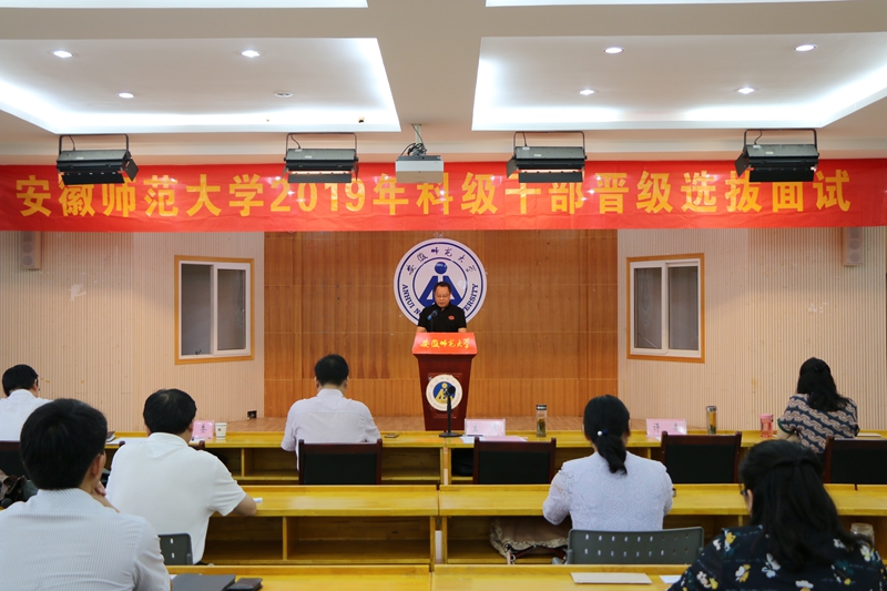 本网讯(组织部  李古州)619日,学校集中举行2019年科级干部晋级选拔面试。校党委副书记李琳琦担任主考,相关部门负责人和各学院党委书记担任评委。19名青年干部走上讲台汇报主要工作及业绩情况,展示风采,交流任职期间工作经验。