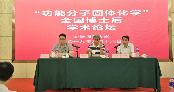 开幕式上,朱家存代表学校向论坛的召开表示热烈的祝贺,向参加论坛的领导和专家学者表示诚挚的欢迎。他介绍了学校及化学学科的办学情况和博士后管理工作,强调了博士后流动站是培养高层次人才的“孵化器”,学校一直高度重视博士后流动站建设工作,在制度建设、资源配备,学术平台以及服务等方面给予较多支持。他指出此次博士后学术论坛是功能分子固体化学领域的重要学术交流平台,是展示该领域最新研究成果的窗口,学校将以此次论坛为契机,进一步加强博士后流动站的建设和管理,多出科研成果,为地方经济社会发展提供智力支撑,为国家培养高层次人才。