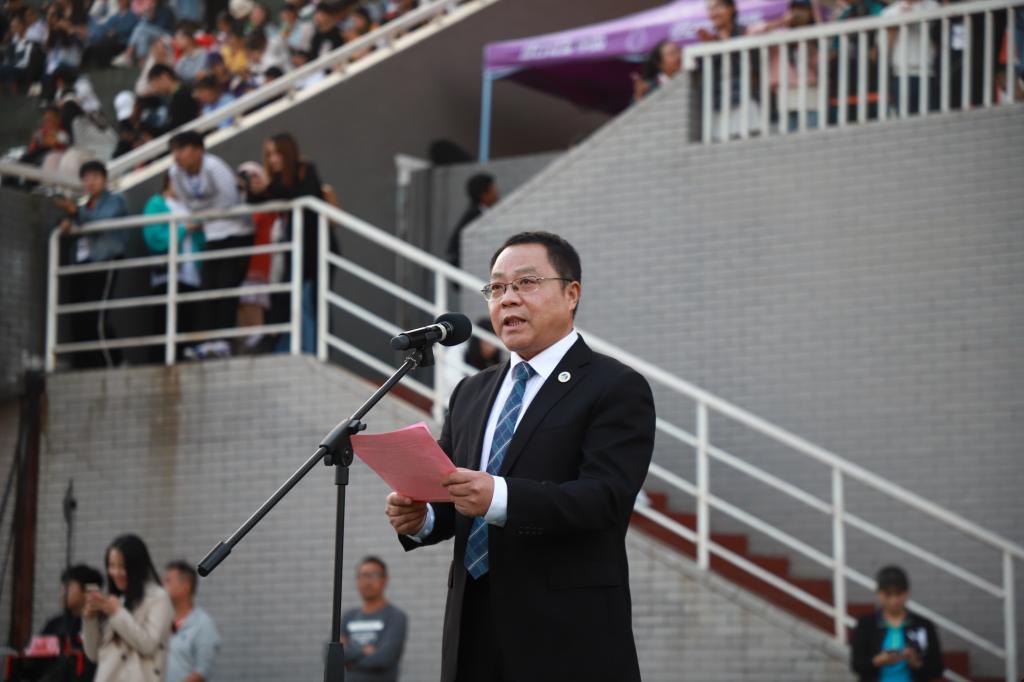 他希望全校师生以本次运动会为新的起点,加强体育锻炼,积极投身到丰富多彩的体育运动当中,发扬习近平总书记倡导的“重在参与、自强不息、顽强拼搏”的体育精神和“更快、更高、更强”的奥林匹克精神,以更加饱满的热情、更加昂扬的斗志、更加奋进的状态,投入到今后的学习和工作当中,用拼搏奋斗铸就精彩的人生,为学校高水平大学建设和实现中华民族伟大复兴的中国梦作出新的更大贡献。