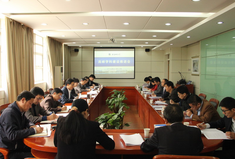 本网讯(发展规划处、学科建设办公室 文/王士武 图/孙彦)11月12日下午,学校召开高峰学科建设推进会。校长张庆亮出席会议并讲话,发展规划处(学科建设办公室)、人事处、教务处、科研处、研究生院、财务处、资产与实验室管理处、后勤管理处等单位负责人,马克思主义学院、化学与材料科学学院及9个相关学院的负责人参加了会议,会议由副校长彭凤莲主持。