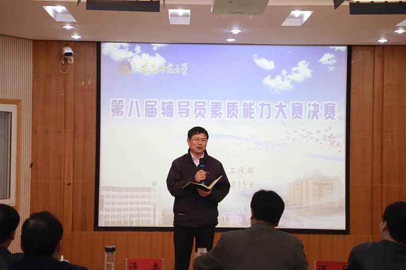 本网讯(学工部汪婕 )11月15日,学校举办第八届辅导员职业能力大赛决赛,旨在进一步增强我校辅导员素质能力,推动辅导员队伍职业化、专业化发展。校党委常委、副校长毕明福出席比赛并担任主任评委,学校有关部门负责人和专家应邀担任大赛评委。各学院党委副书记、全体专兼职辅导员现场观摩了比赛。