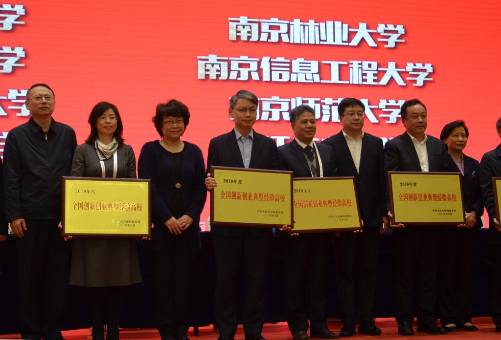 本网讯(教务处 郭志春)11月22日,教育部在上海举行2019年度全国创新创业典型经验高校总结交流会。会上,教育部授予安徽师范大学等50所高校“全国创新创业典型经验高校”奖牌。安徽师大党委常委、副校长陆林,教务处副处长、创新创业教育学院副院长李汪根参加大会并代表学校接受授牌。安徽师范大学是本次安徽省唯一入选全国创新创业典型经验50强高校。这也是该校继获评全国毕业生就业典型经验高校以来人才培养工作取得的又一重大成果。