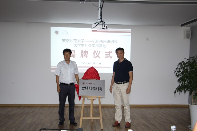 毕明福和阳凌峰共同为安徽师范大学暑期社会实践基地揭牌。