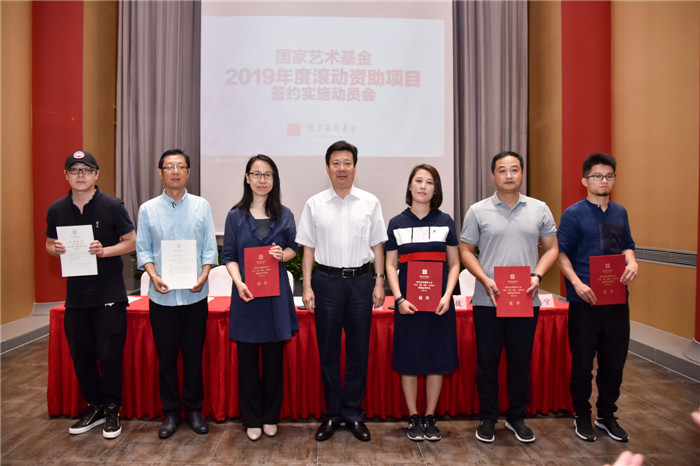 在动员会上,李群向获得滚动资助项目和纳入成果运用项目的我校美术学院副教授、硕士生导师王屹等艺术家代表颁发了立项证书。此次王屹老师签约的项目是2019年度国家艺术基金滚动资助成果运用项目《新农村农民精神》。作品得到基金中心评审专家的一致好评,被列入优秀作品。