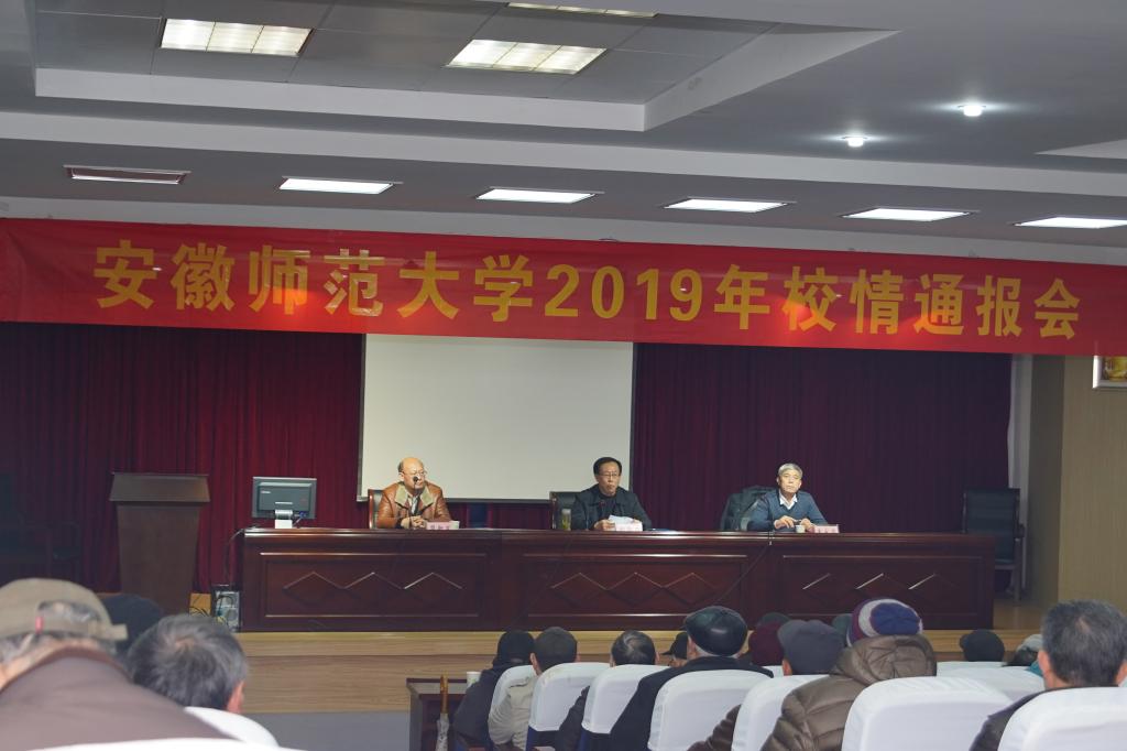本网讯(离退休工作处)1月7日下午,学校2019年校情通报会在赭山校区图书馆报告厅召开,校党委书记胡朝荣向离退休老同志通报校情。校党委常委、副校长朱家存,校党委常委、纪委书记周新发,学校离休老干部、校退教协理事、退休教职工、校院两级关工委代表以及学校有关部门负责人等参加了会议,朱家存主持会议。