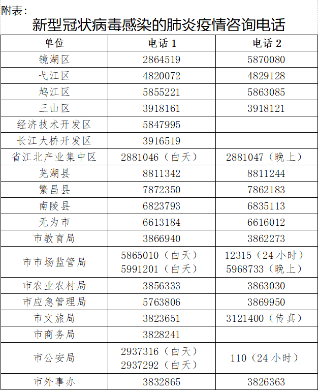 六、各县(市)区、各单位最大程度动员离芜人员不得提前返回芜湖,本地人员做到减少流动。