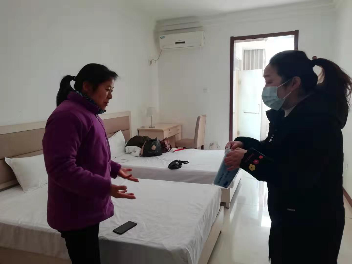 在消毒客房时,客房部领班宋永霞及时给个别具有畏难情绪的员工做好心理疏导工作,并不断提醒大家提高自我保护意识,做好防护措施。为了提前到岗,大年初二就从老家赶回来的宋永霞在工作之余还多次跑到各大药房,为大家购买防护口罩、酒精等消毒用品。她说:“我时刻不忘自己是一名中共党员,把初心落在实际行动上,为学校的疫情防控工作献出自己的一份力量。”