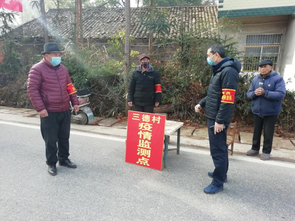 按照中共中央《关于加强党的领导、为打赢疫情防控阻击战提供坚强政治保证的通知》要求,根据省、市、县统一部署,驻村扶贫工作队到村后,克服防护装备简陋的困难,与三德村“两委”成员冲在疫情防控最前线。工作队根据宿松县与湖北省接壤、三德村在武汉市务工人员较多的特点,广泛发动群众,全面排查从病源地区回村的务工人员以及和病源地区有密切接触的其他人员,指导做好居家隔离观察,定时测量体温;利用大喇叭、手提扩音器、印制纸质材料等广泛宣传新型冠状病毒感染的肺炎防控知识,引导群众不信谣、不传谣,通过戴口罩、勤洗手、勤通风等方式科学应对疫情;动员全村党员和村民组长在各村民组设立疫情监测点,开展出入人员识别、登记,对走亲访友者和非本村居民进行劝返;及时掌握全村红白喜事情况,劝导群众不办酒、不请客、不聚集。广泛发动党员参与防疫工作,成立党员突击队,发挥了党员的先锋模范作用。近日来,共摸排湖北返乡人员居家隔离46户63人,共劝阻红白喜事聚餐41场,设置村组劝返点48个。