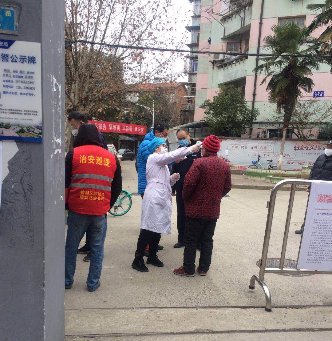 自5号通告发布,社区党委立即和安徽师范大学联系,让其帮助一同参与到凤凰山小区封闭式管理工作中,当天即关闭铁门,只保留一个进出口,师范大学还为小区配备了专职医生、保安与社区联防联控共同值守。封闭当日,社区党委成立了临时党支部,由区直部门到社区报到的党员、社区志愿者党员、安师大保卫处党员、社区党员共同对小区住户发放通行证,党员防疫宣传工作台,免费口罩发放登记,要求进出小区人员必须佩戴口罩,接受实时体温监测,严控居民出入。